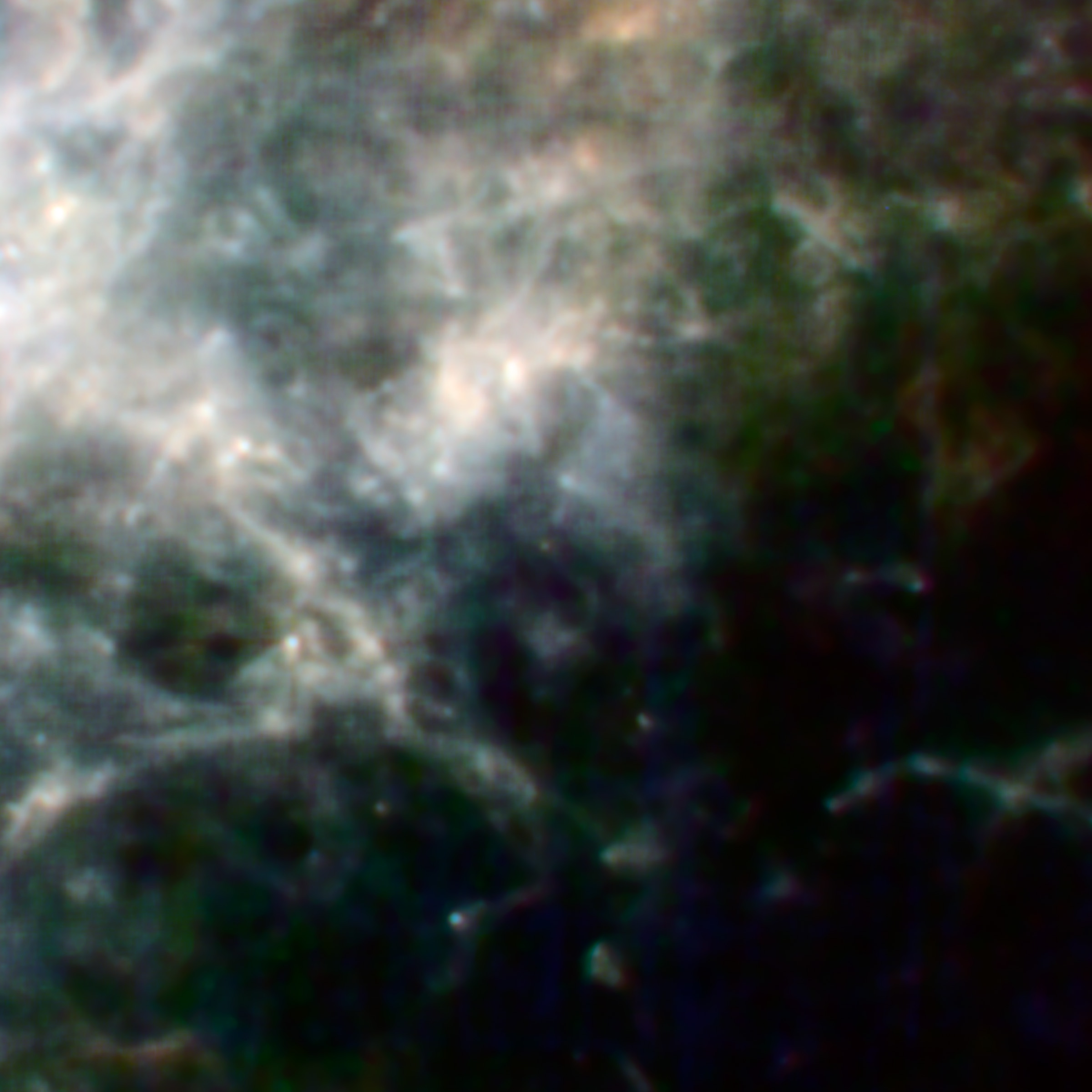 This colour-composite image shows a far-infrared view of the region surrounding the remnant of the famous supernova SN1987A as observed by Herschel. SN1987A resides in the Large Magellanic Cloud, one of the dwarf galaxies orbiting the Milky Way, and it was first observed from Earth 24 years ago. At a distance of only 160 000 light years, this backyard supernova has become a 'local' laboratory for close-up studies of stellar demise. The remnant of SN1987A is visible as a faint dot of light at the centre of the image.