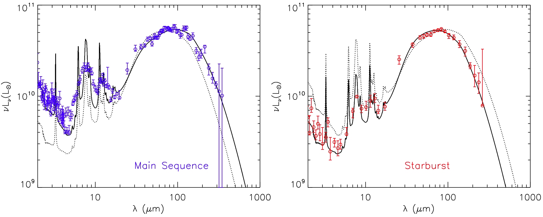 Depicts: Typical SED of main-sequence and starburst galaxies