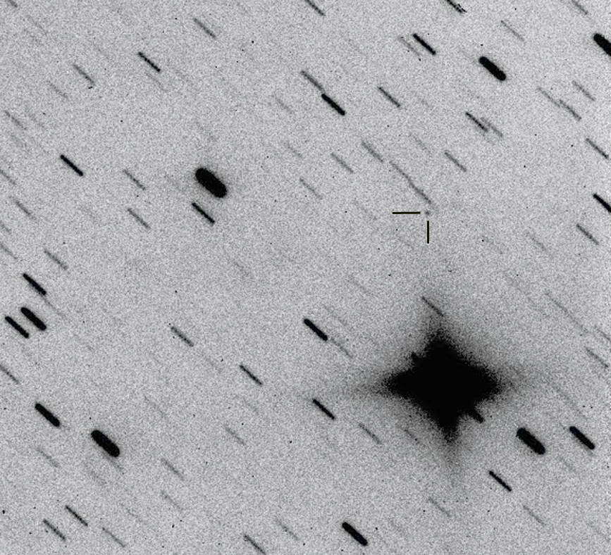 The Herschel space observatory is shown here in monochrome and negative against a backdrop of stars, the latter streaked by the telescope tracking the motion of the observatory as it drifts away from its position at Lagrange Point 2 into orbit around the Sun.