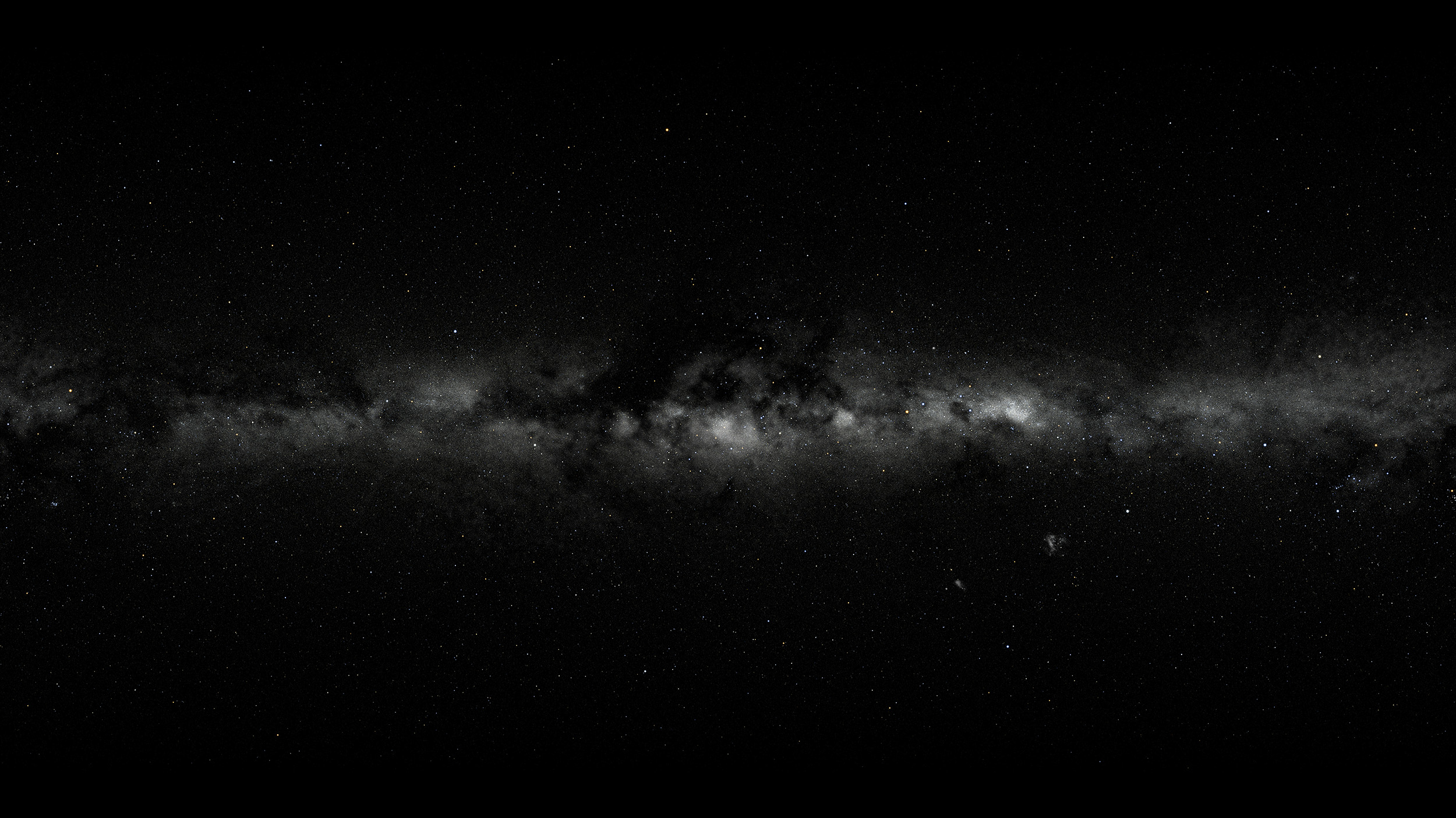 This image of the entire sky at visible wavelengths has been compiled using data from ESA's Hipparcos satellite. It reproduces the night sky as the human eye would perceive it after getting used to the darkness. The sky is shown in galactic coordinates, with the plane of our Galaxy, the Milky Way, running horizontally along the central row of the image; the Galactic Centre is in the middle of the image.