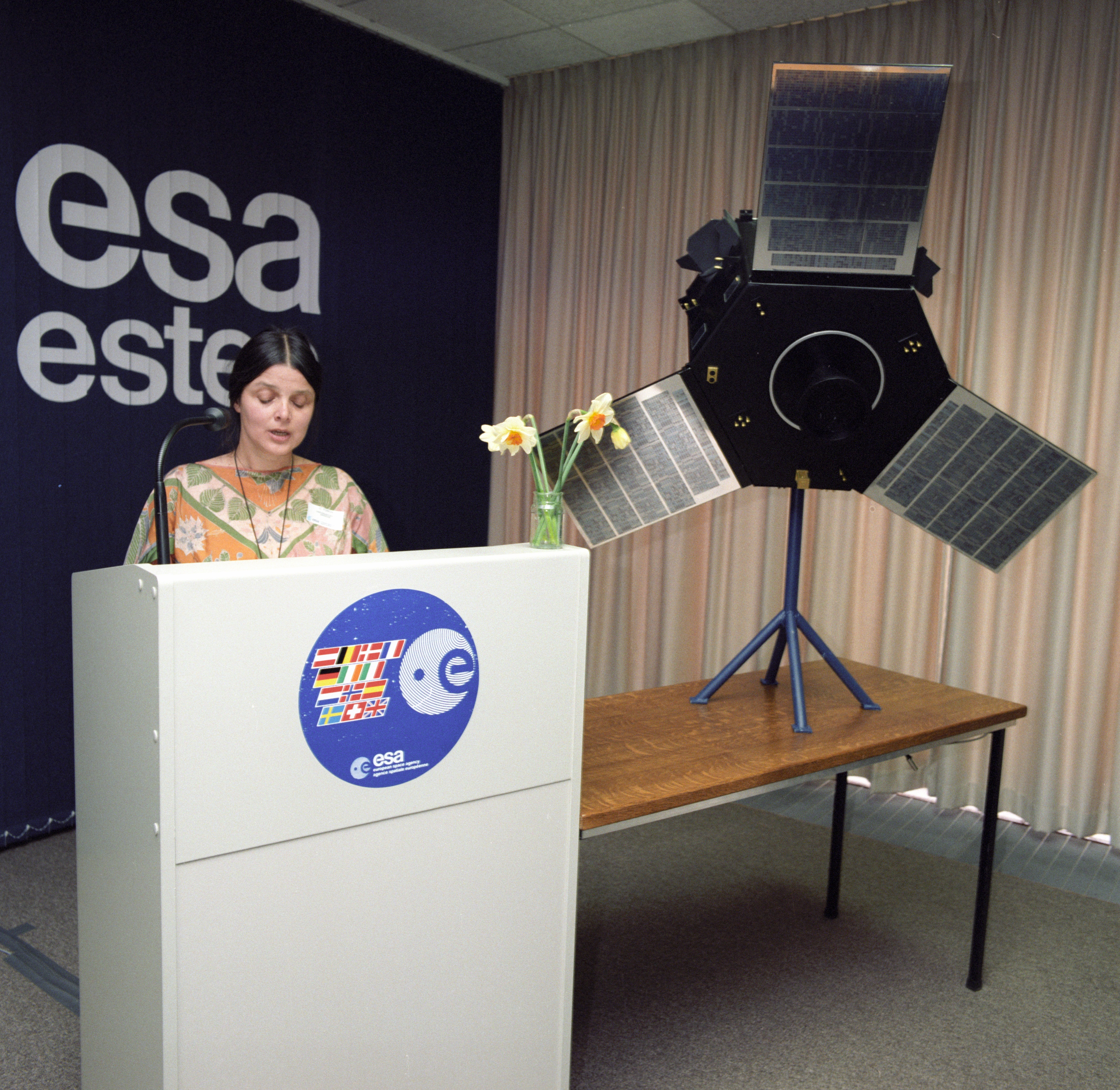 At the press conference, Reimar Lüst (ESA Director General from 1984-1990, not pictured) received the Hipparcos Input Catalogue on behalf of ESA, in the presence of members of the Hipparcos science community and ESA Hipparcos team members. The Hipparcos Input Catalogue formed the mission's observing programme: it contained over 100 000 target stars that Hipparcos would monitor to obtain their astrometric properties.