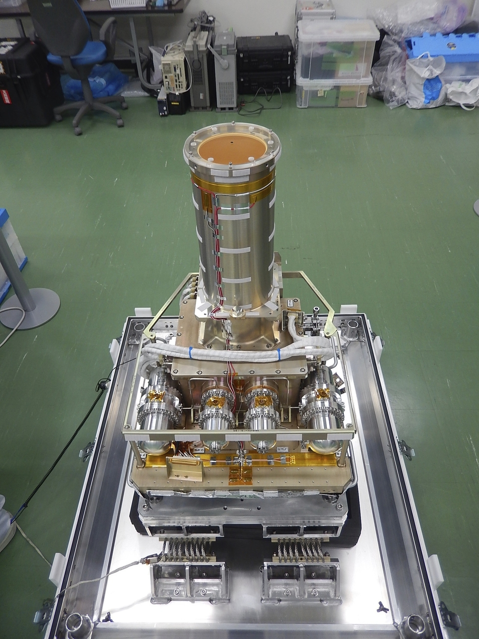 This photo shows the Soft X-ray Imager (SXI) on the Hitomi satellite.