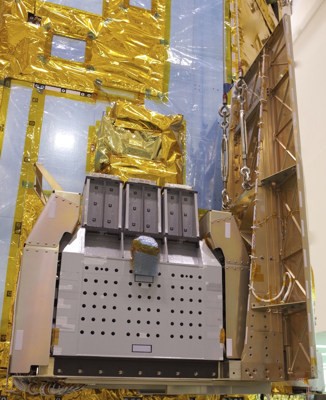 This photo shows one of the two Soft Gamma-ray Detector (SGD) units mounted on the outer panels of the Hitomi satellite.