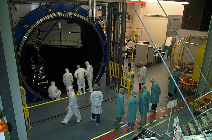 One last inspection of the test facility with the HST Solar Array Wing prior to chamber closure (ESTEC, Noordwijk, 25 October 2000).