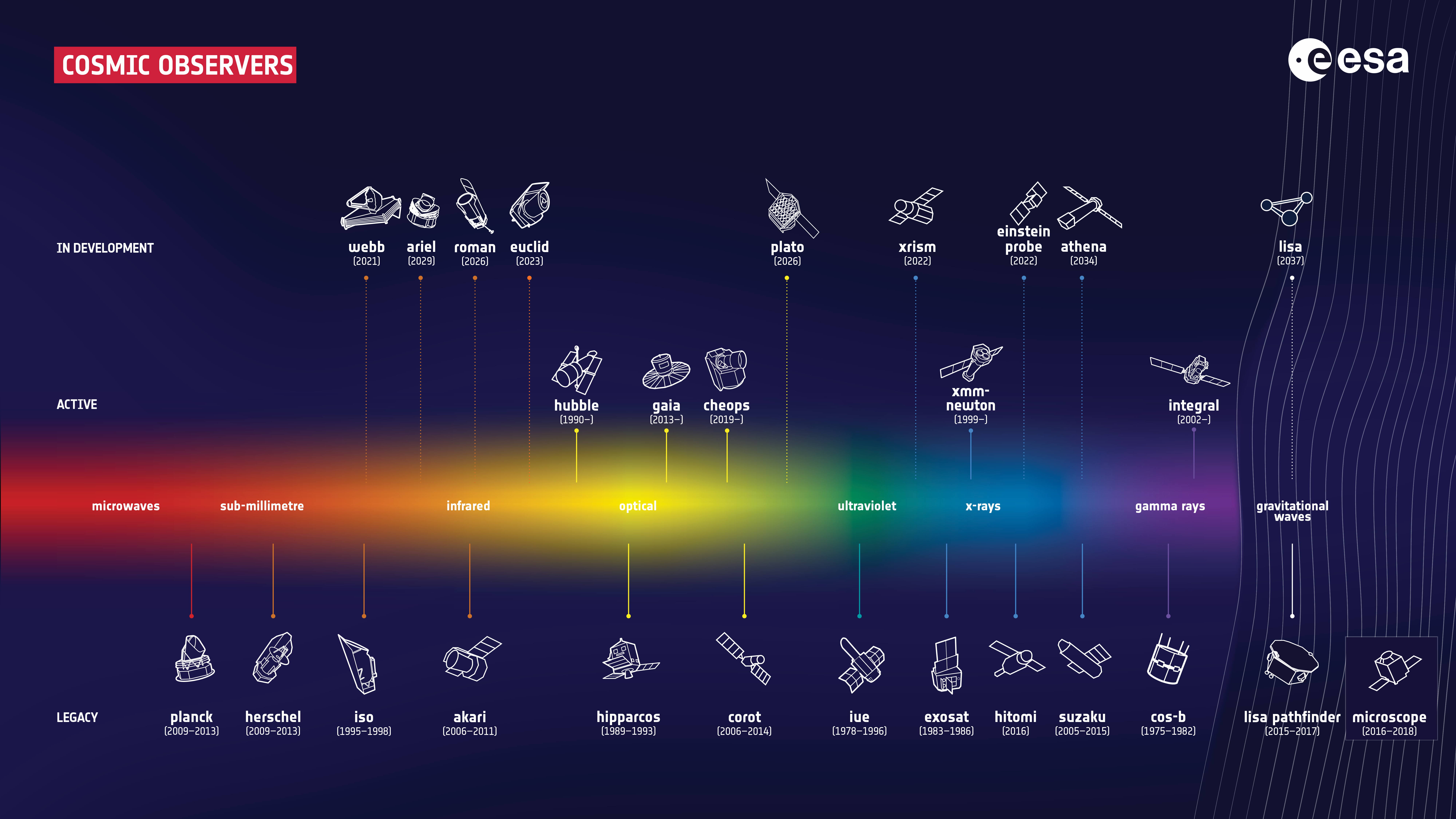 The successes of our earlier missions form part of ESA's science and technology legacy, feeding into the next generation of cosmic observers. Even missions that have completed their in-flight operations still yield new scientific discoveries decades after, thanks to their vast data archives available to researchers worldwide.