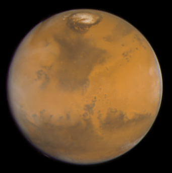 This "true-color" image of Mars shows the planet as it would look to human eyes. It is clearly more earth-toned than usually depicted in other astronomical images, including earlier Hubble pictures.