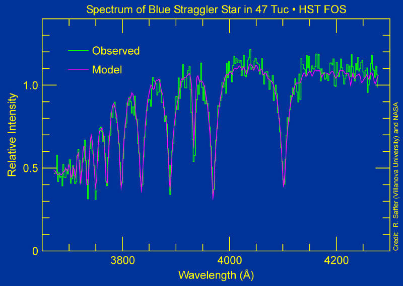 spectrum above compares a computer-generated spectrum of a blue straggler star with one from the observation of the blue straggler in 47