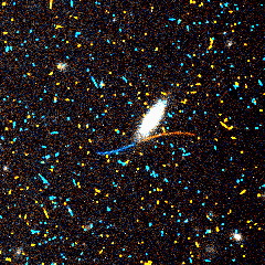 a galaxy in the constellation Leo. The trail is seen in two consecutive