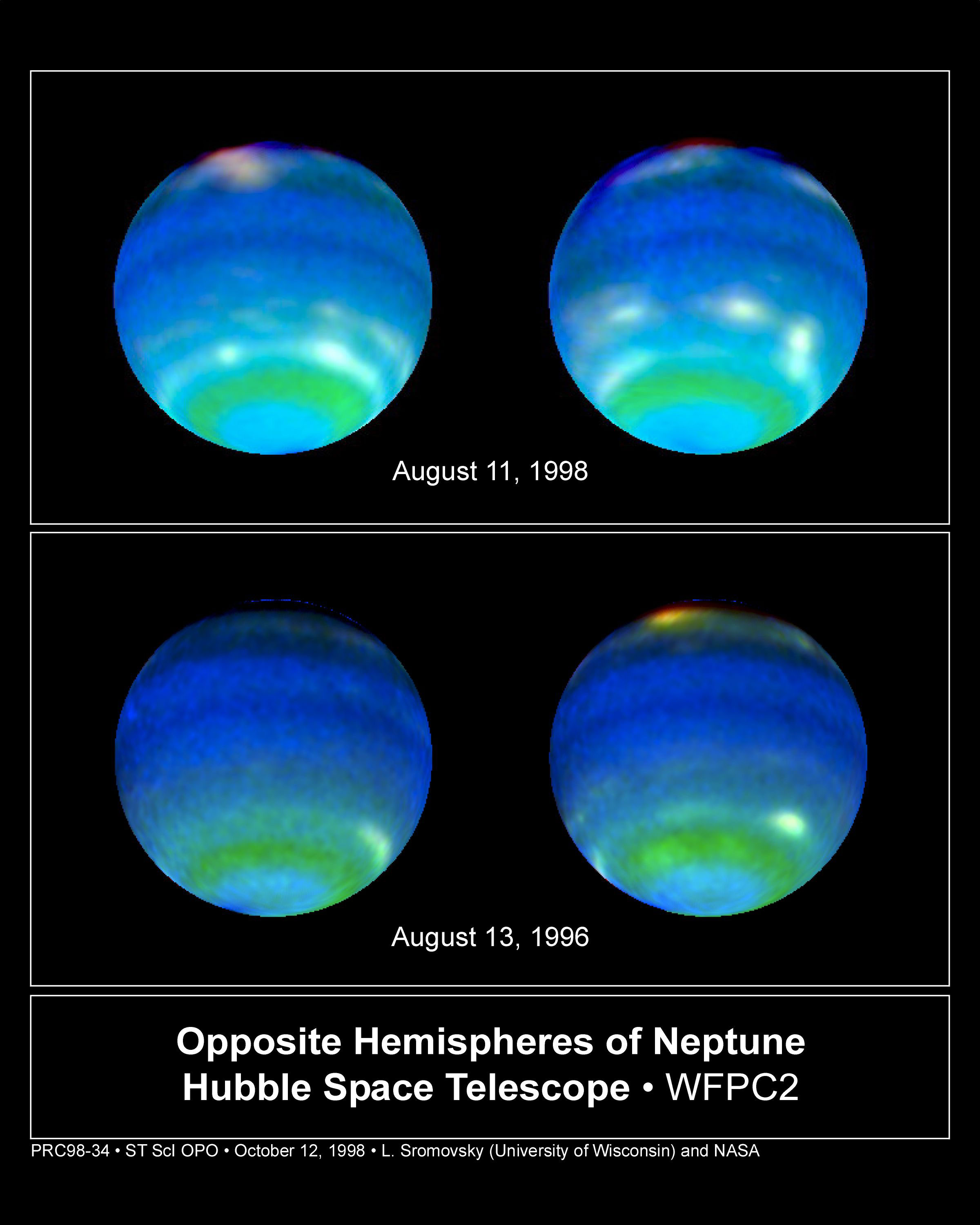 bottom images show Neptune's Hubble portrait circa 1996. The top