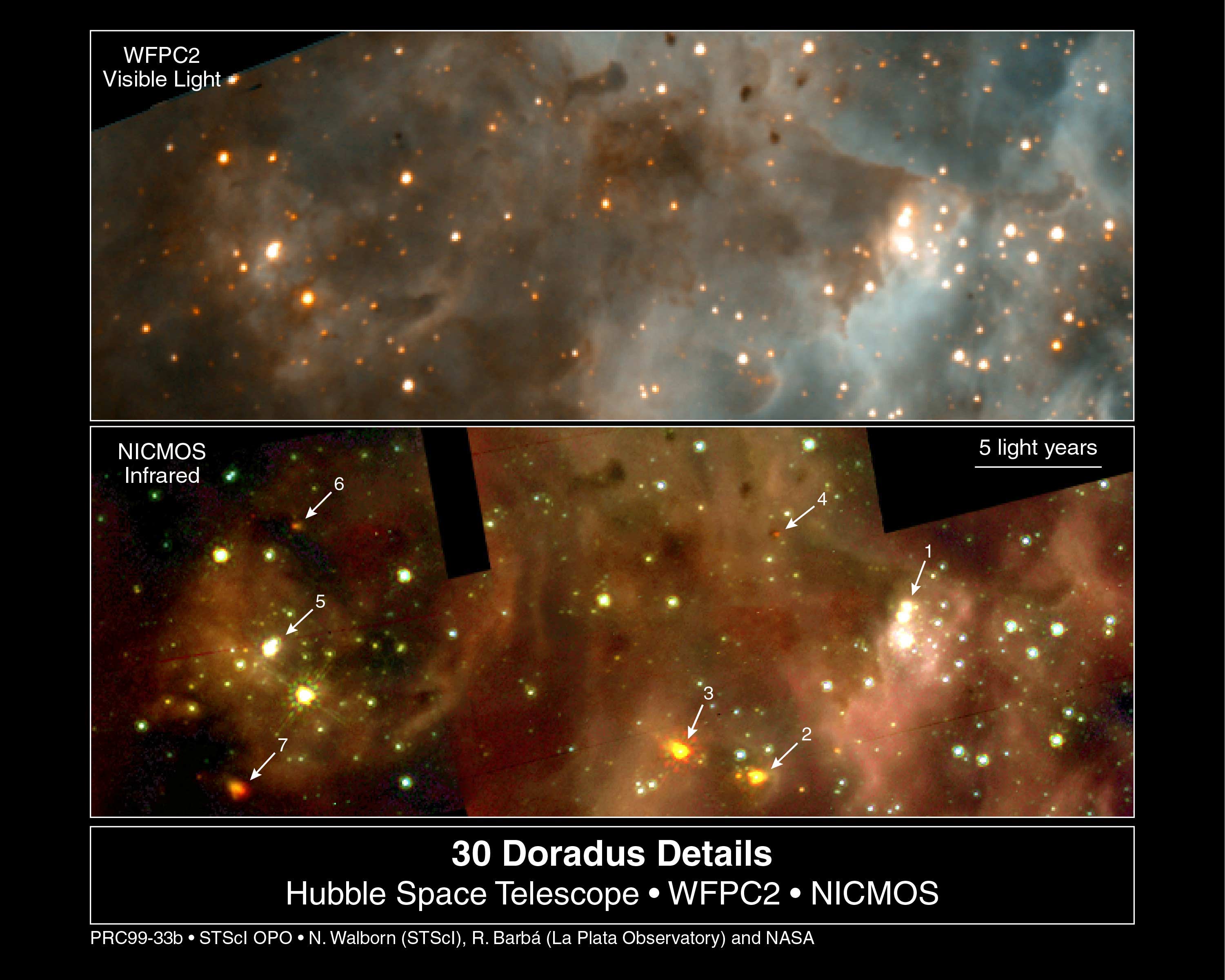 Copyright: NASA/Nolan Walborn (Space Telescope Science Institute, Baltimore, Md.) and Rodolfo Barba' (La Plata Observatory,La Plata, Argentina), NASA/John Trauger (Jet Propulsion Laboratory, Pasadena, Calif.) and James Westphal (California Institute of Technology, Pasadena, Calif.)