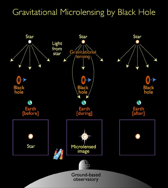 Though the angular separation is shown here, it is 100 times smaller than what HST can resolve. Hence the phenomenon is called "microlensing". HST and other telescopes instead see a brightening of the Star as the black hole drifts by, but they do not resolve the multiple images.
