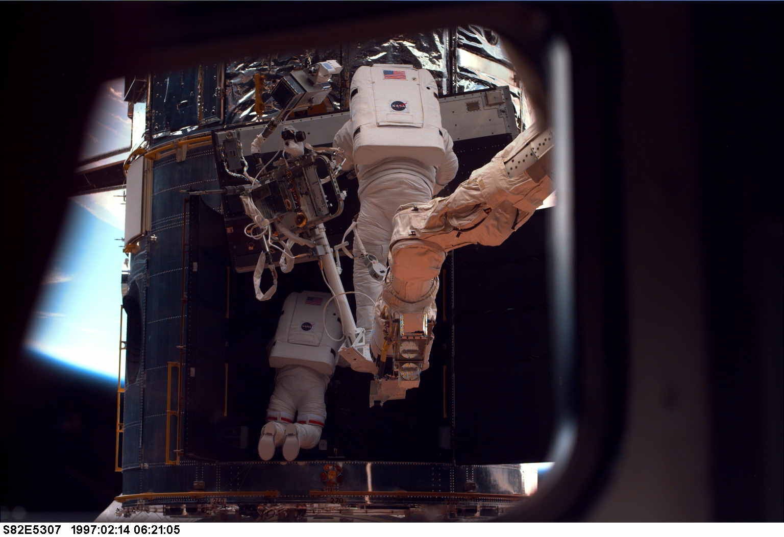 Astronauts removing the GHRS (Goddard High Resolution Spectograph).