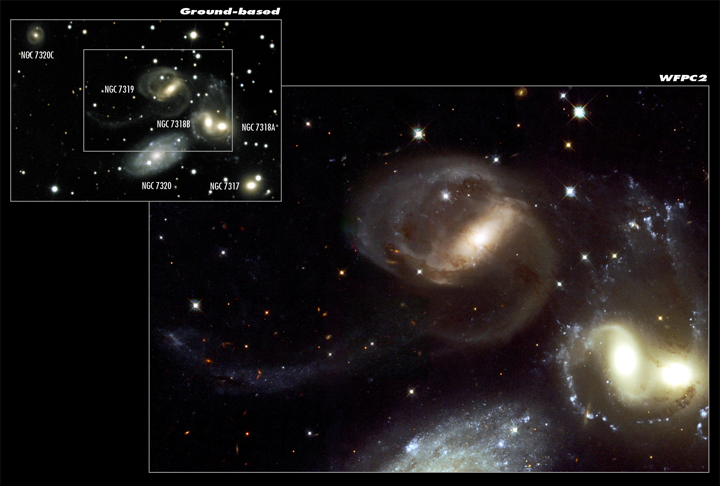The ground-based view to the left provides an overview of Stephan's Quintet.