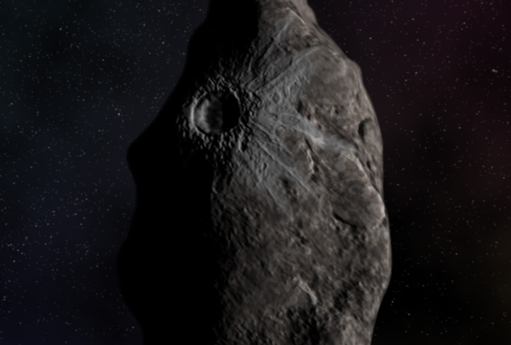 This is an artist's impression of object called 8405 Asbolus, a 48-mile-wide (80-kilometer) chunk of ice and dust that lies between Saturn and Uranus. Astronomers using the NASA/ESA Hubble Space Telescope were surprised to find that one side of the object (also called a Centaur) looks like it has a fresh crater less than 10 million years old, exposing bright underlying ice Hubble didn't directly see the crater - the object is too small and far away - but a measure of its surface composition shows a complex chemistry. The event that caused the impact crater on 8405 Asbolus may also have knocked it out of the Kuiper belt, a ring of comet nuclei just beyond Pluto's orbit.
