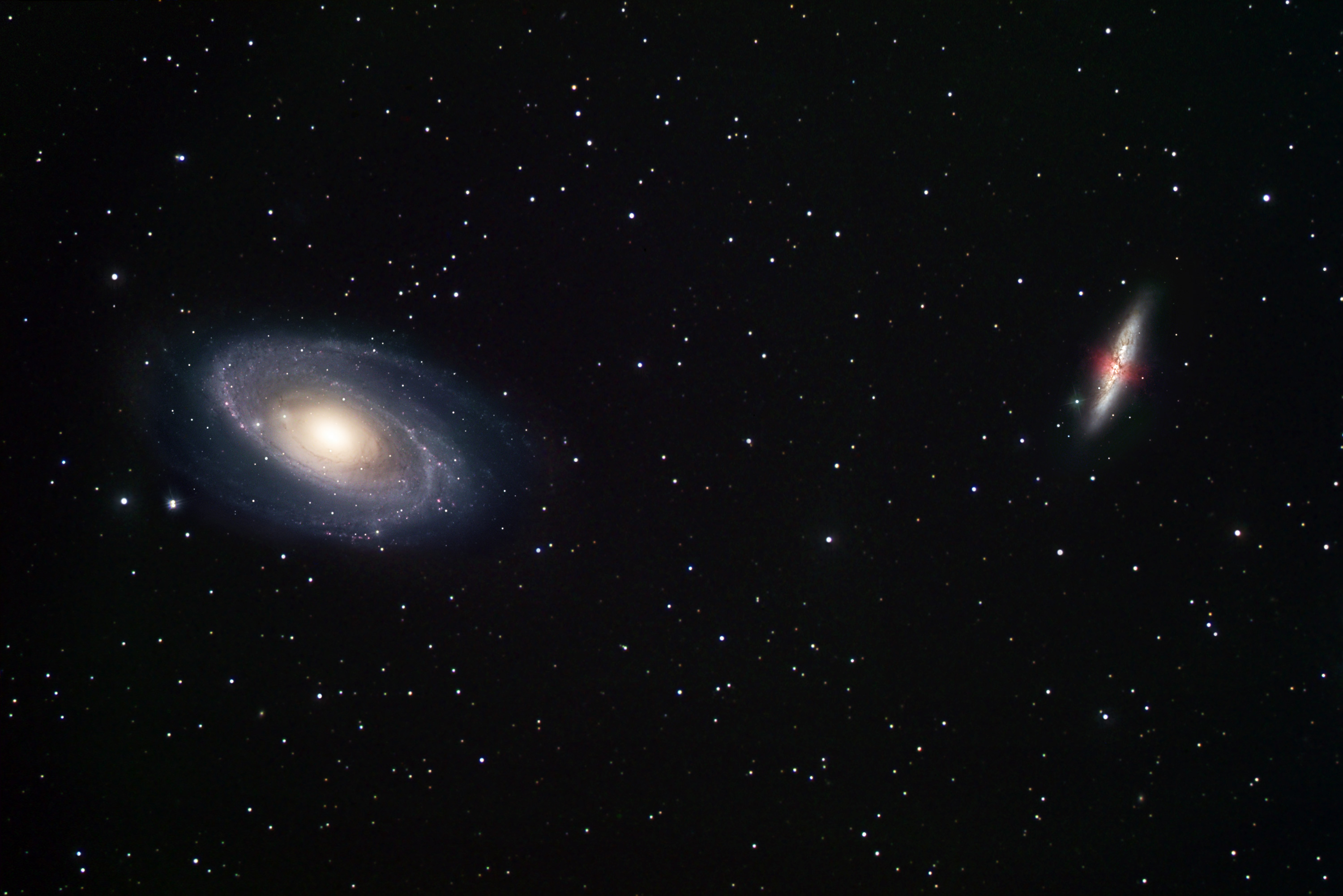 Ground-based view of two galaxy neighbours: M81 and M82