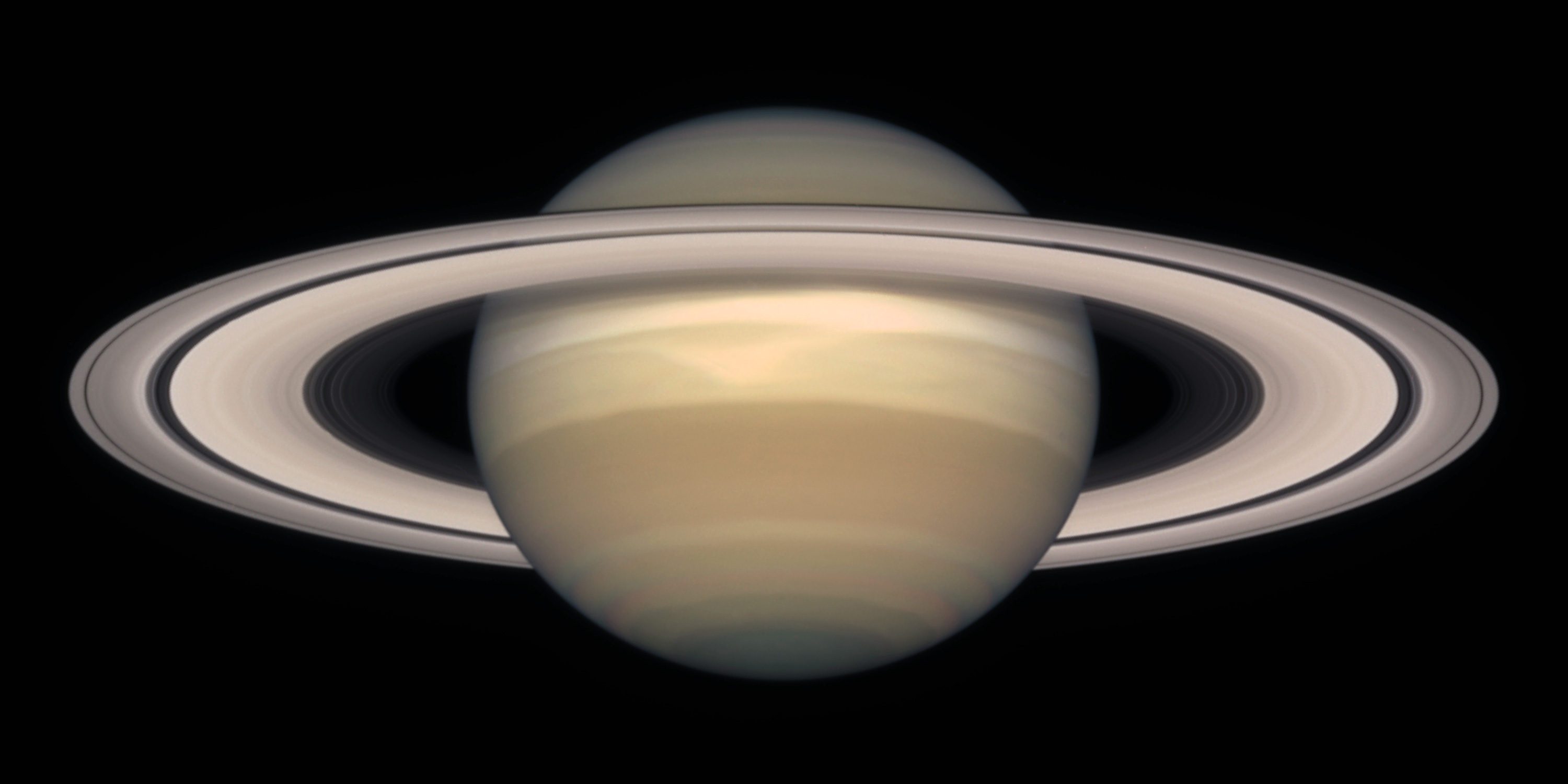 The delicate color variations in the clouds are due to smog in the upper atmosphere, produced when ultraviolet radiation from the Sun shines on methane gas. Deeper in the atmosphere, the visible clouds and gases merge gradually into hotter and denser gases, with no solid surface for visiting spacecraft to land on.