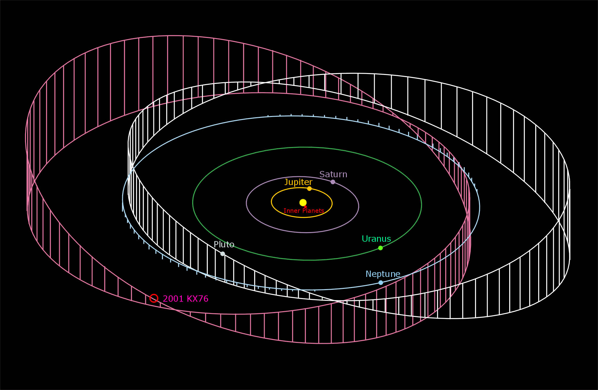 The orbit of 2001 KX76 compared to the orbit of the planets