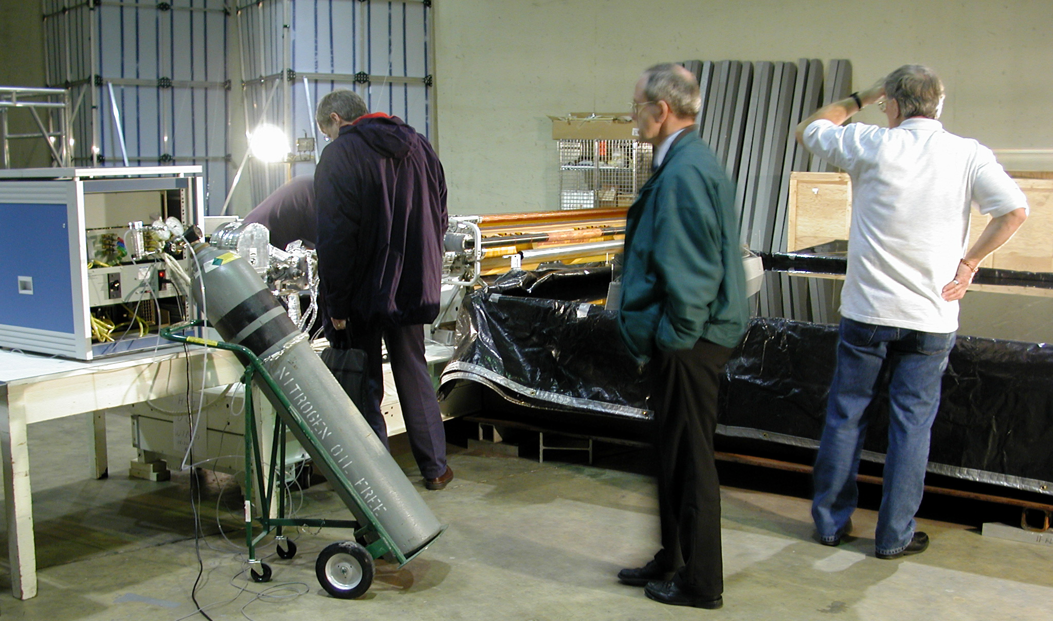 ESA's 'DQ wing crew' at the test version of Hubbles second set of solar arrays