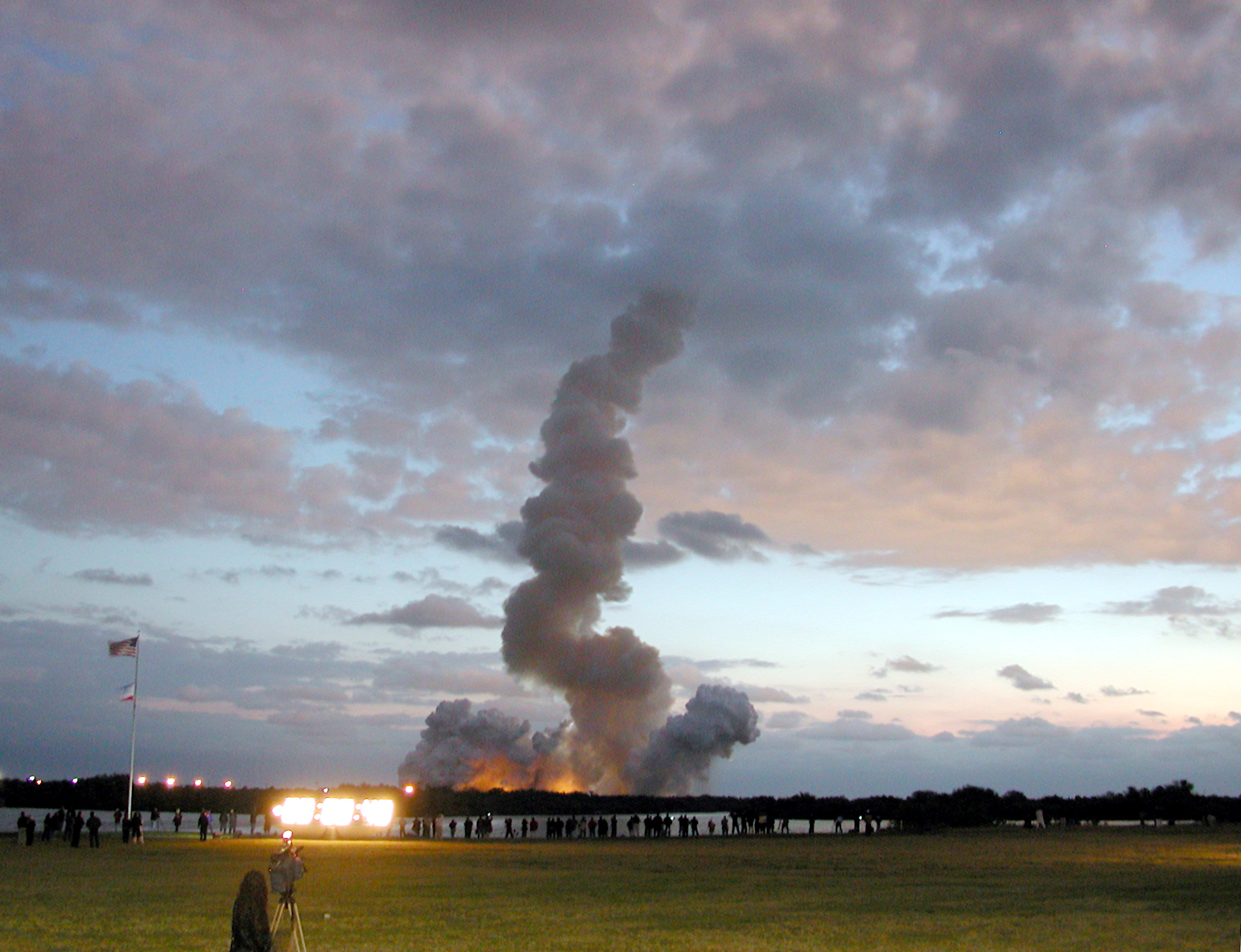 SM3B - A trail of smoke marks the path of the Space Shuttle Columbia