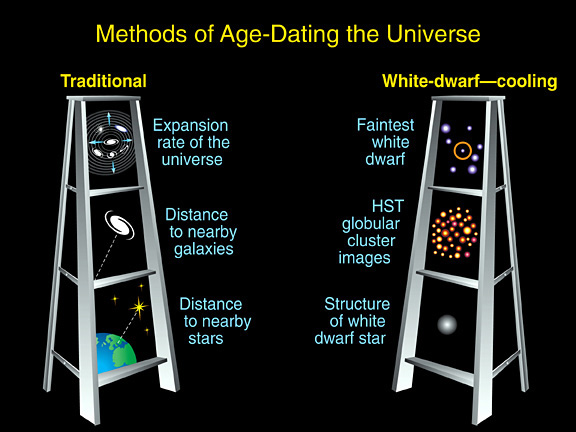 In the "white-dwarf-cooling method," astronomers studied the faintest white dwarfs in a globular cluster. Globular clusters are among the oldest clusters of stars in the universe. And the faintest and coolest white dwarfs within globular clusters represent the oldest stars in the clusters. Earlier Hubble observations showed that the first stars formed less than 1 billion years after the universe's birth in the big bang. So, finding the oldest stars puts astronomers within arm's reach of the universe's age.