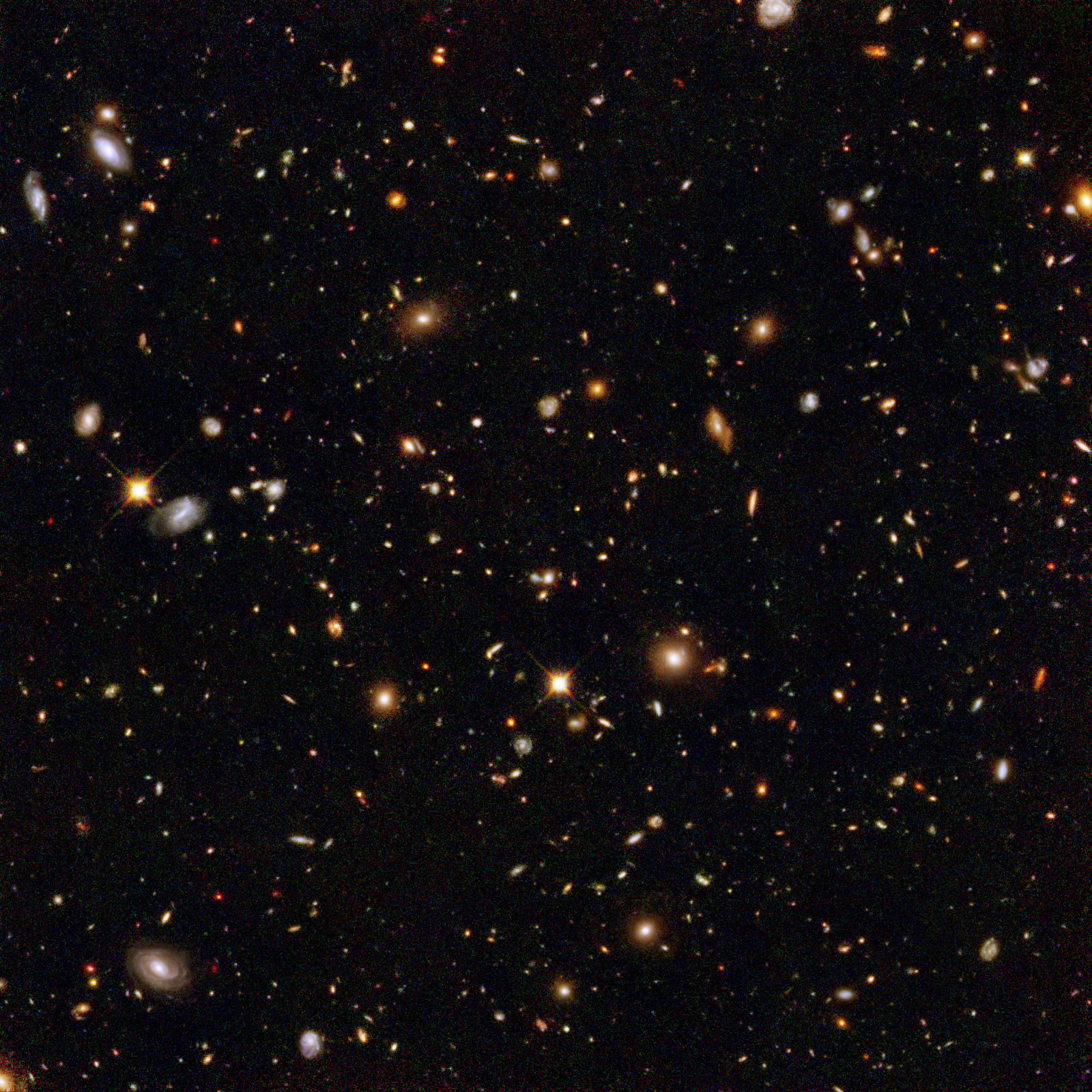 This composite image was assembled from exposures taken by the near-infrared camera and the advanced camera. Astronomers incorporated the advanced camera's visible-light observations into the image to better discriminate the colours of the distant galaxies. The near-infrared camera observations were taken from 3 September to 27 November 2003.