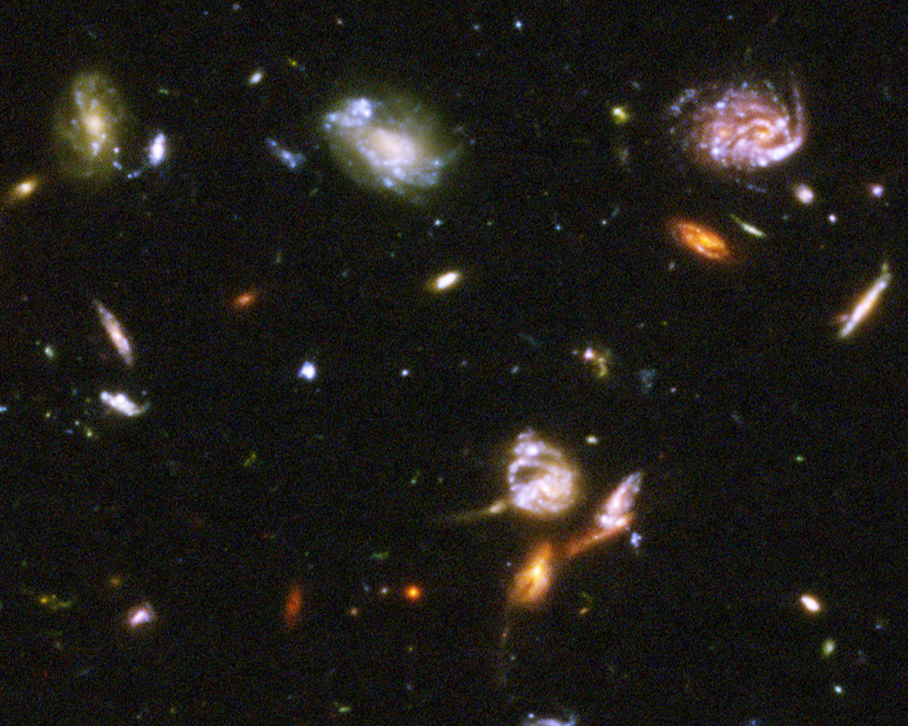 The galaxies in this panel were plucked from a harvest of nearly 10 000 galaxies in the Ultra Deep Field, the deepest visible-light image of the cosmos.