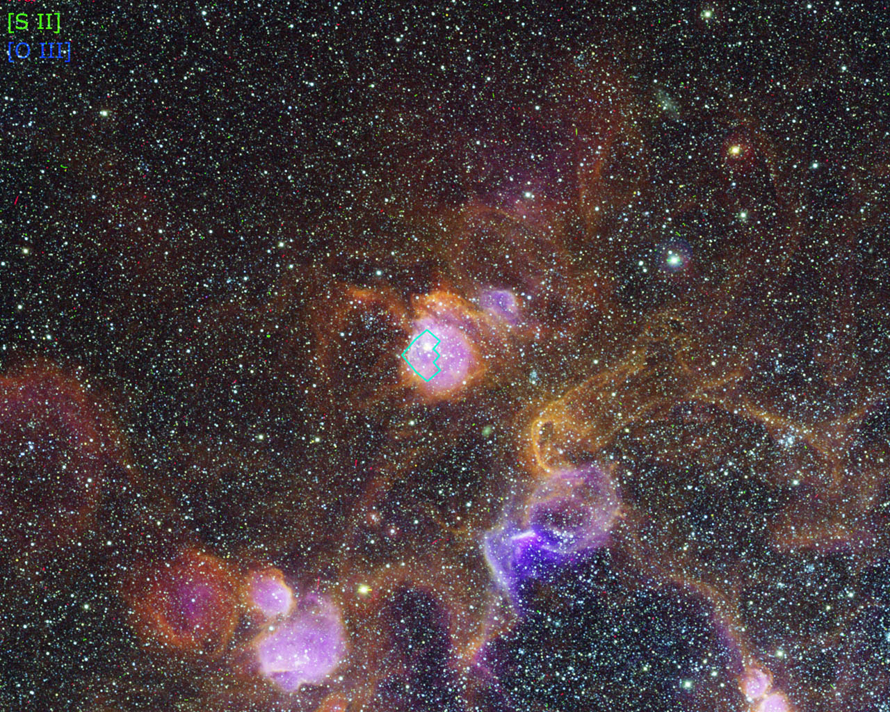 An image of the Supergiant Shell LMC-4 in the Large Magellanic Cloud, taken with the Curtis Schmidt telescope at Cerro Tololo Inter-American Observatory (CTIO) as part of the Magellanic Clouds Emission Line Survey (MCELS).