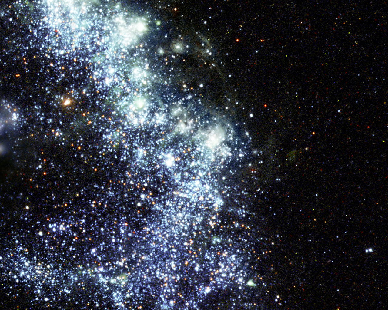 An example of some of the 3000 bright clusters of sizzling newborn blue stars in the Pinwheel galaxy.