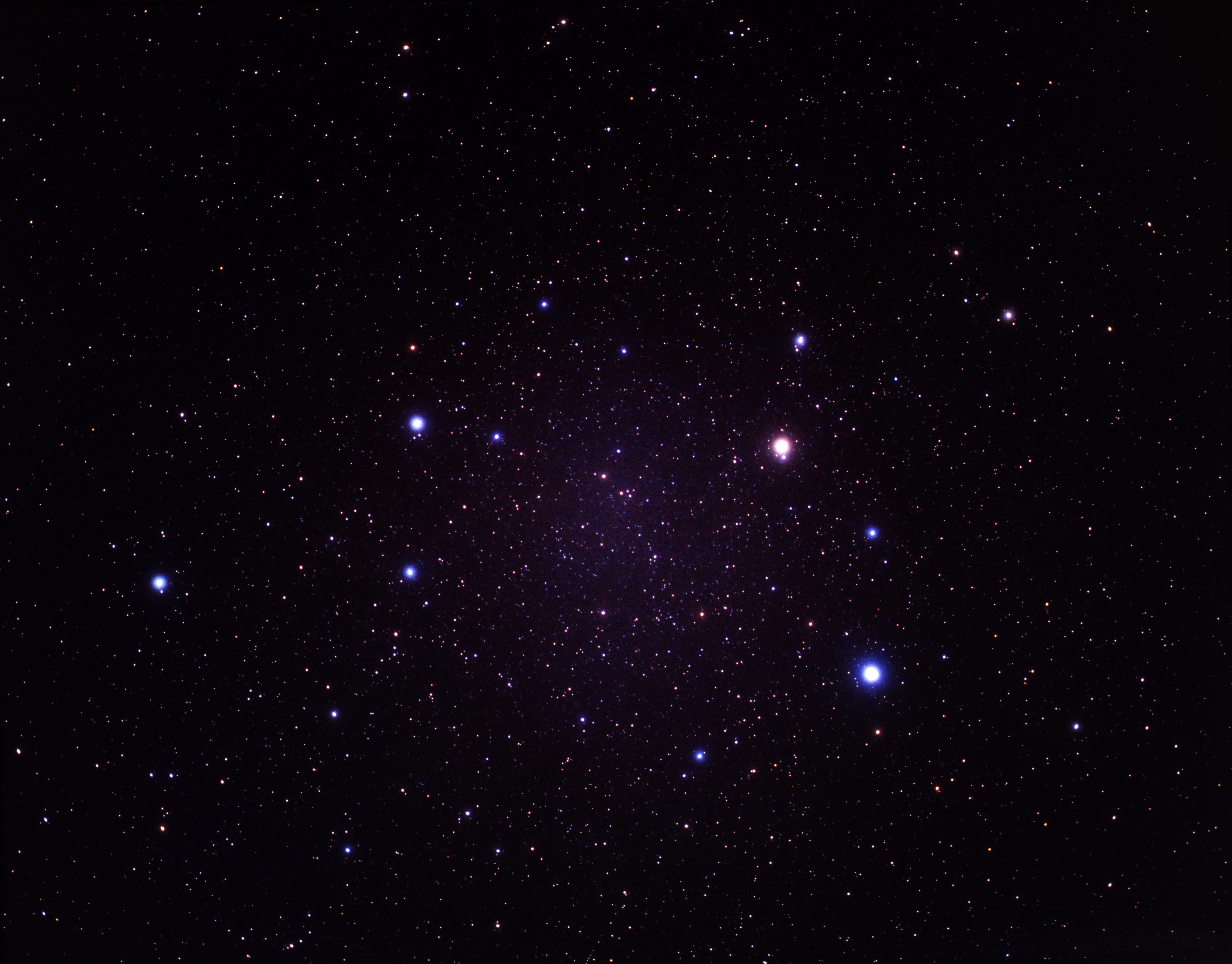 A wide-field image showing the constellation of Leo. The interacting galaxy pair, Arp 87, is located on the left in this view, above Leo's "hind legs". See also the related videos for a zoom-in on Arp 87.