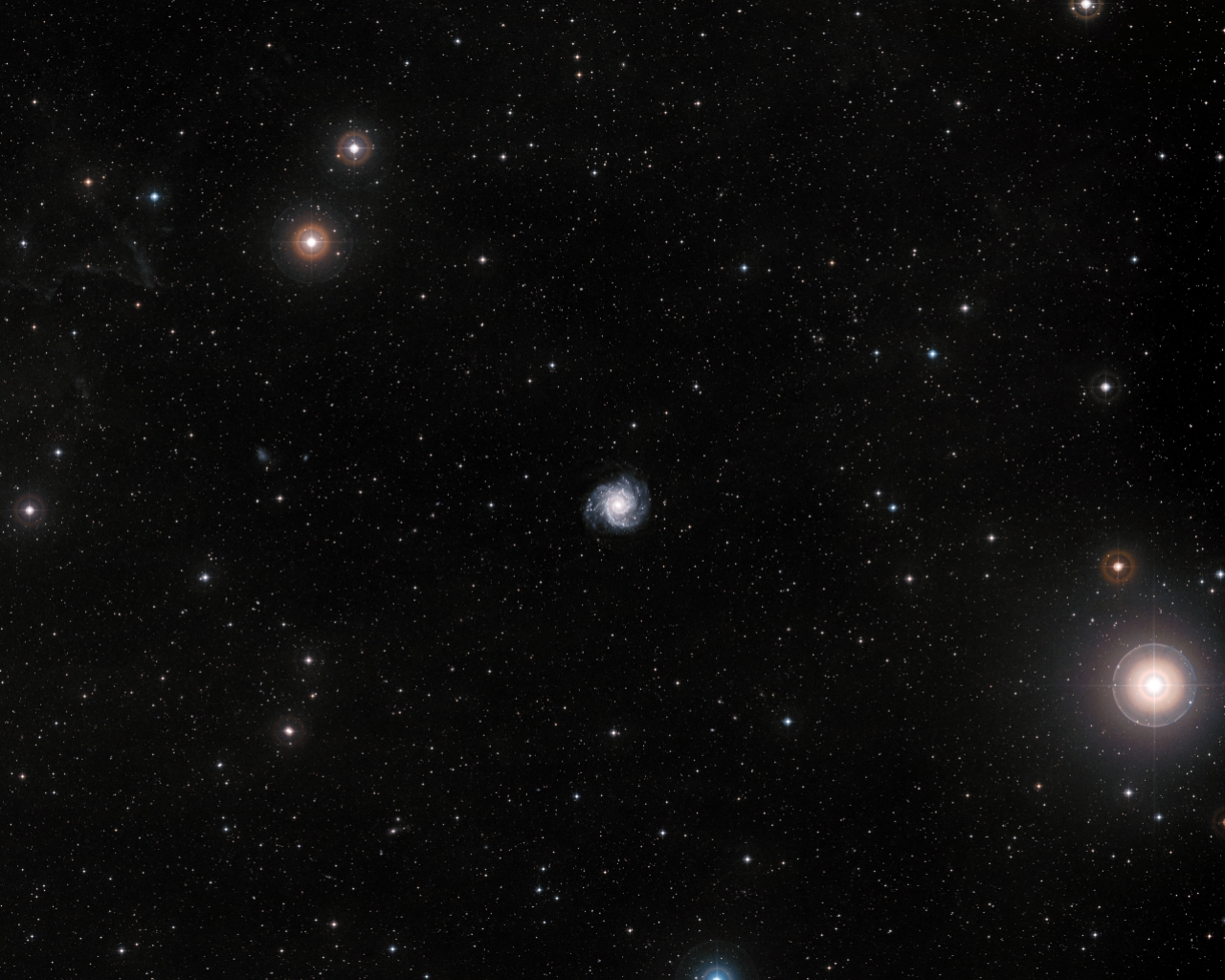 An image of the region of sky around the grand-design spiral galaxy M74, from the Digitized Sky Survey 2. The field-of-view is approximately 2.8° x 2.8°.