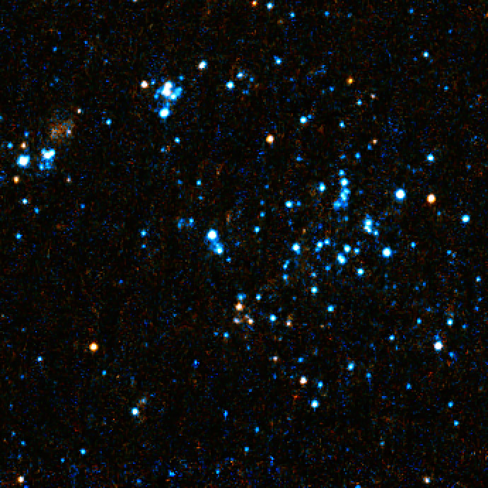 A Hubble Space Telescope visible light close-up of bright blue star clusters in Arp's Loop in the M81-M82 galaxy group.