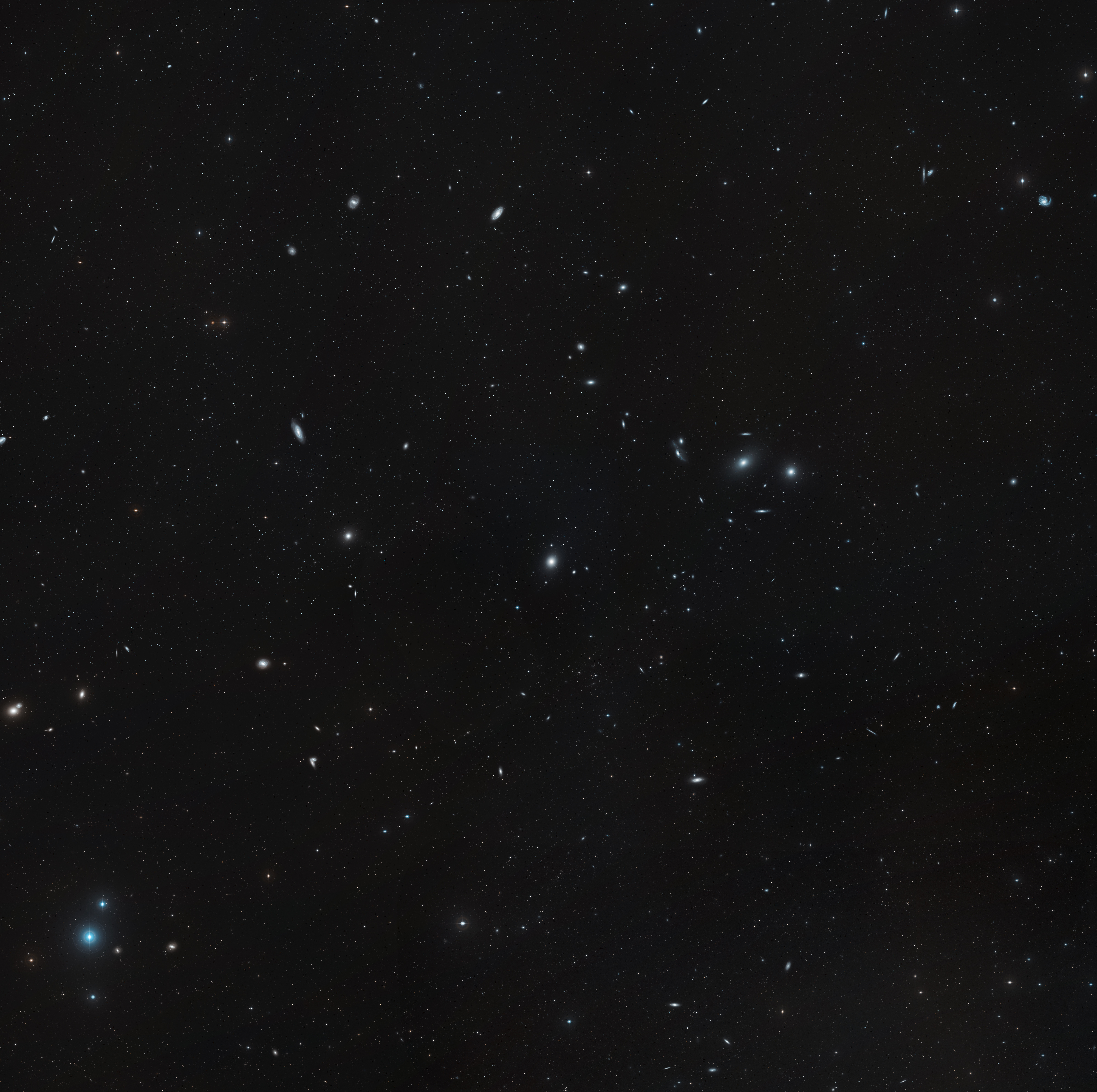 This image was taken with the Palomar Observatory 48-inch Schmidt telescope as part of the Digitized Sky Survey. It shows the central ~6.4°×6.4° of the Virgo cluster of galaxies, with the dominant elliptical galaxy M87 at the centre.