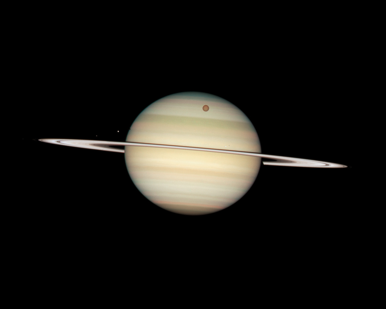 Depicts: Saturn, Enceladus, Dione, Titan and Mimas