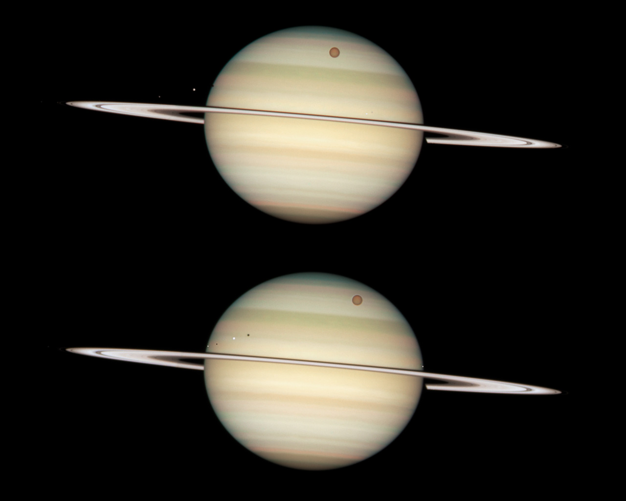 Depicts: Saturn, Enceladus, Dione, Titan and Mimas