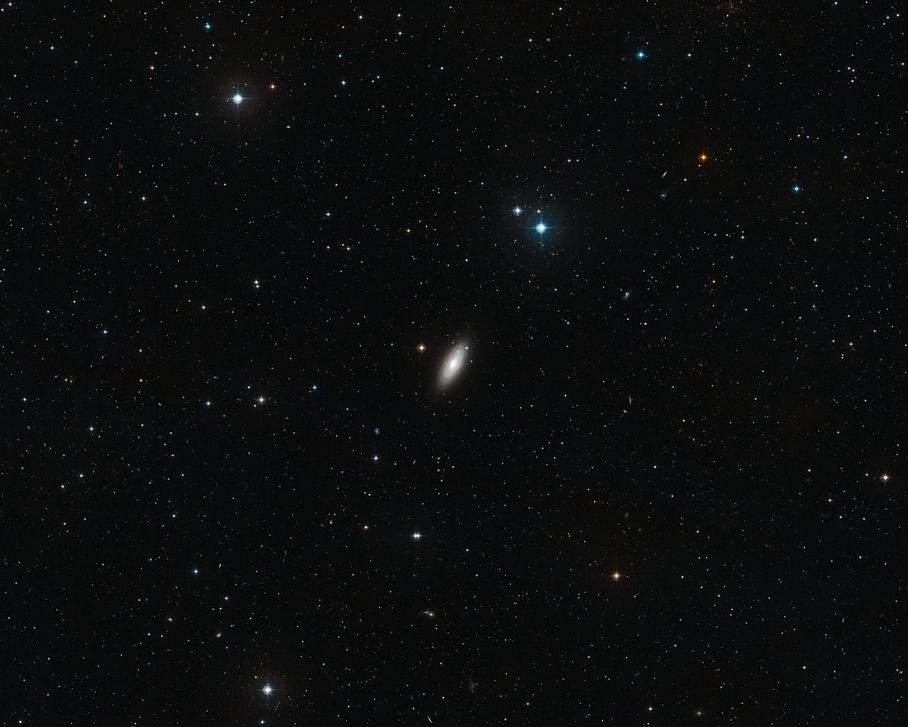 This image shows the area around flocculent spiral galaxy NGC 2841. It is produced from Digitized Sky Survey 2 images.