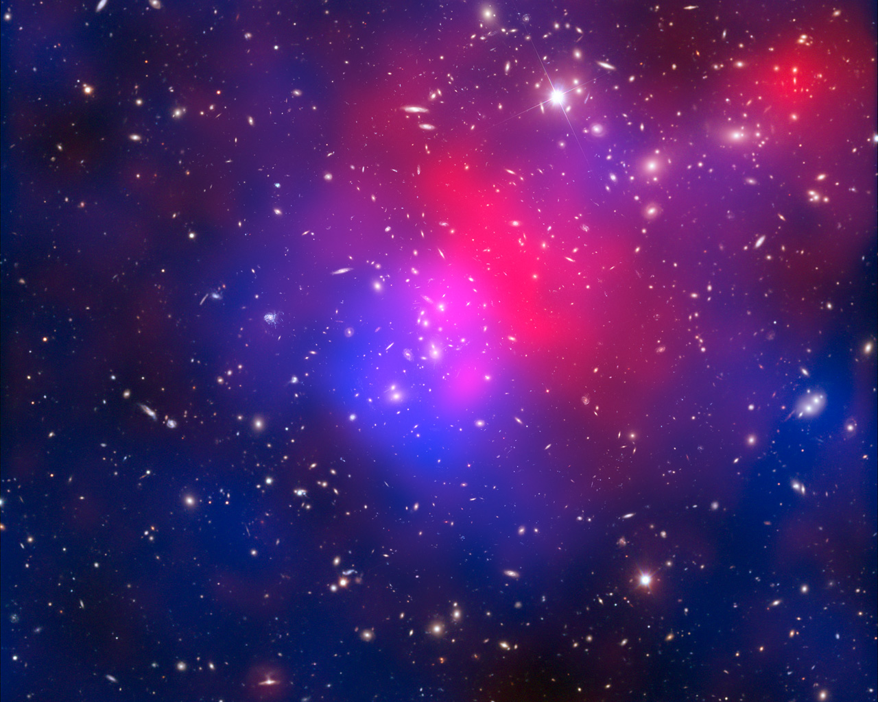 Analysis of this data has allowed scientists to observe some strange phenomena in Abell 2744, including a pocket of dark matter with no gas or galaxies, and a clump of galaxies with no associated gas. Astronomers believe that Abell 2744 formed from the simultaneous pile-up of at least four separate clusters.