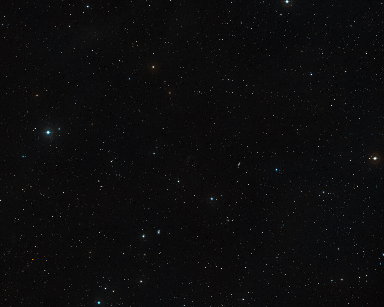 This image shows observations of the area around galaxy cluster Abell 68, as seen by a ground-based telescope.