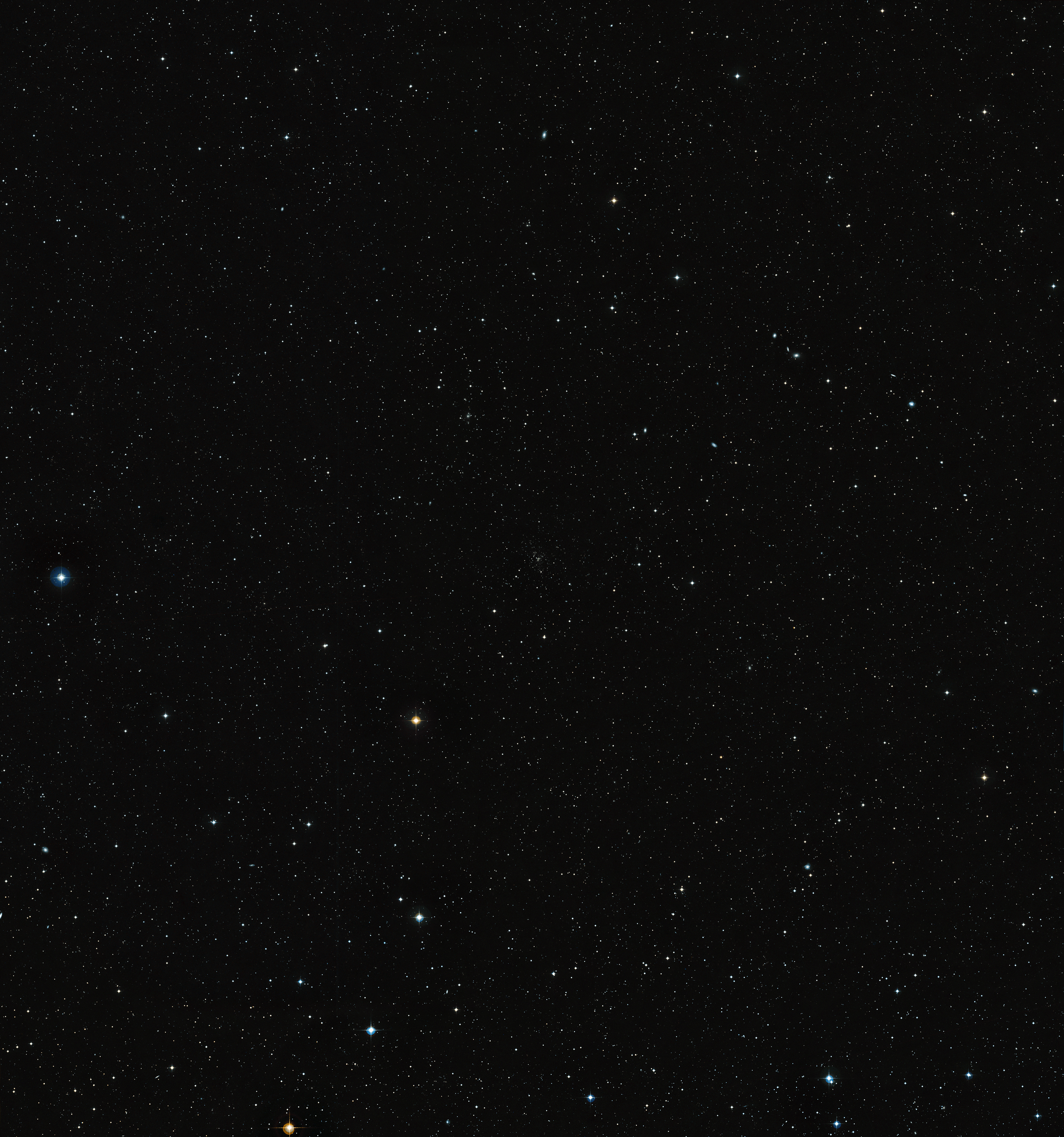 An image of the region of sky around Abell 1689 in the constellation of Virgo, from the Digitized Sky Survey 2. The field-of-view is approximately 2.9 × 2.7 degrees.
