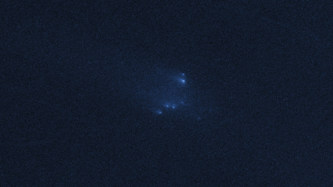 This image shows NASA/ESA Hubble Space Telescope observations of asteroid P/2013 R3. This asteroid has been found to be disintegrating and breaking apart – the first such body ever seen to do this.