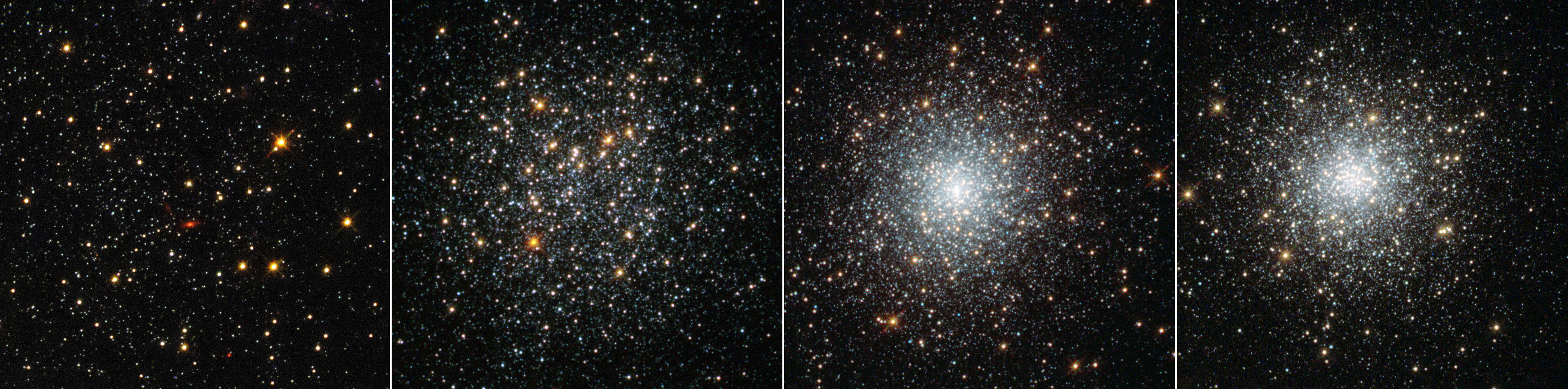 Left to right: Fornax 1, Fornax 2, Fornax 3 and Fornax 5. Their positions within the galaxy are shown in image heic1425g.