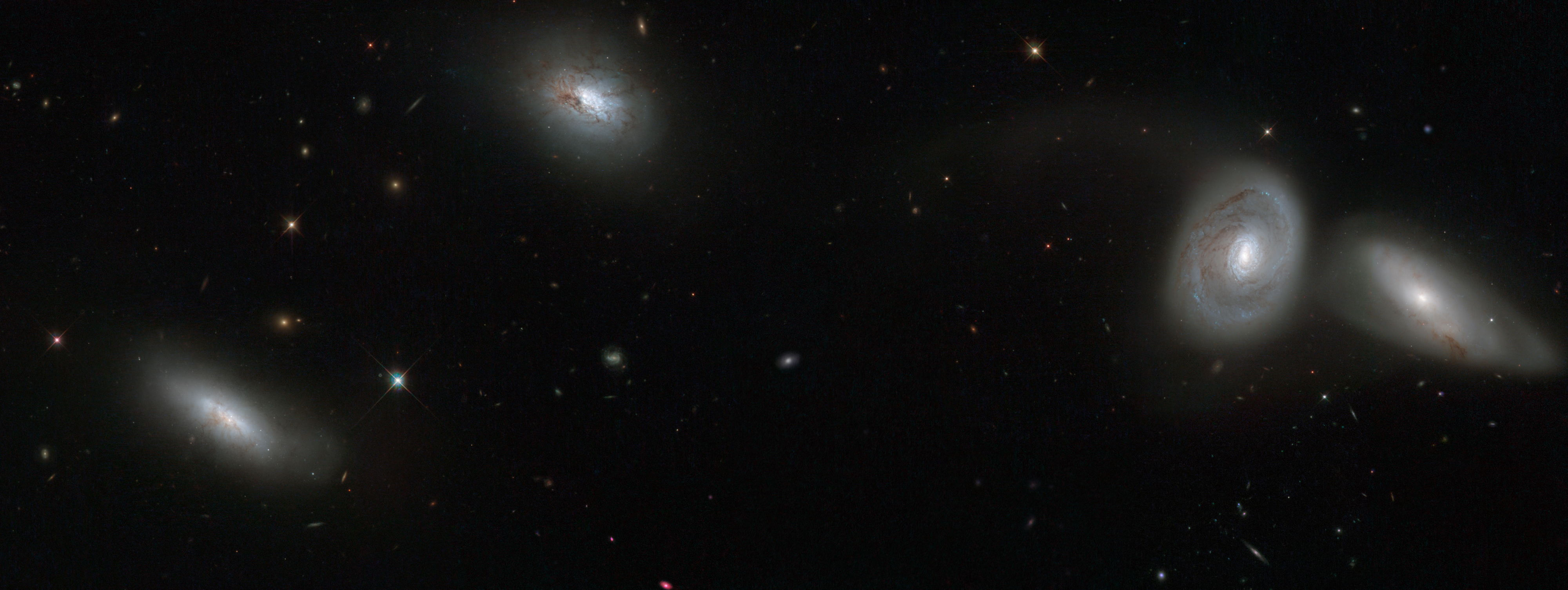This new NASA/ESA Hubble Space Telescope image shows four of the seven members of galaxy group HCG 16.