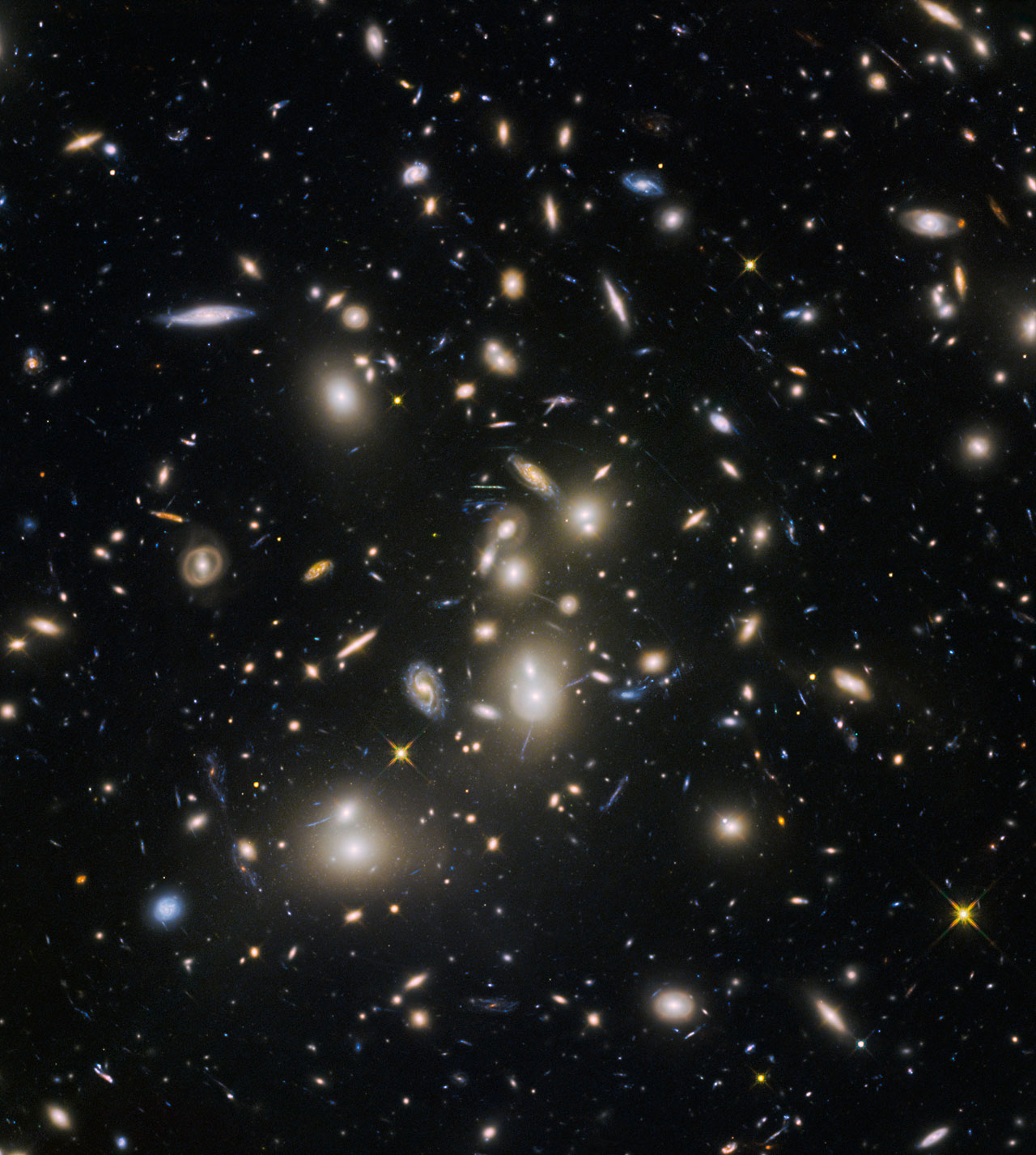 Abell 2744, nicknamed Pandora's Cluster, was the first of six targets within the Frontier Fields programme, which together have produced the deepest images of gravitational lensing ever made. The cluster is thought to have a very violent history, having formed from a cosmic pile-up of multiple galaxy clusters.