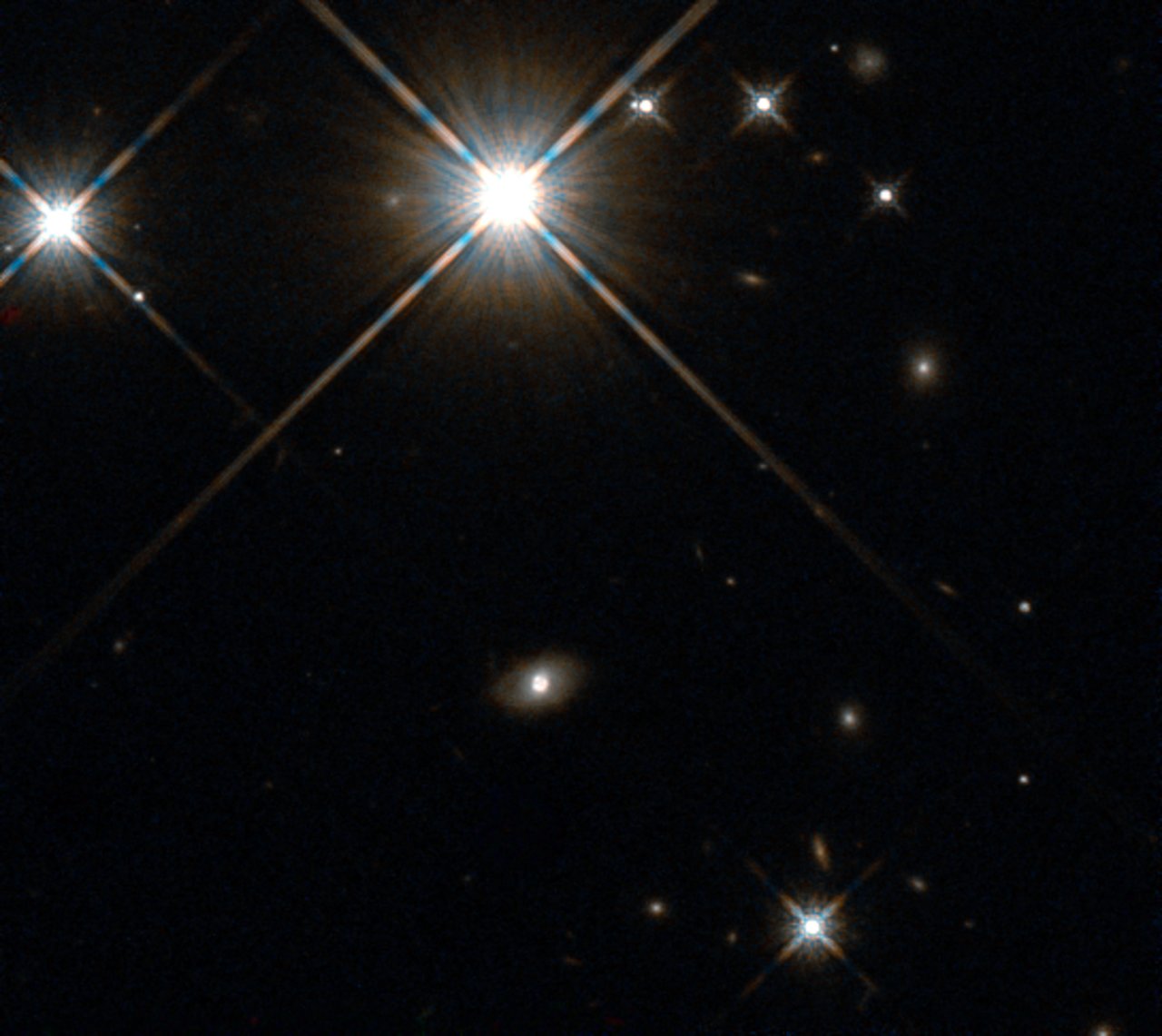 The galaxy SDSS J210415.89-062024.7 is located 2.5 billion light years away. It acted as a lens for a supernova at an even greater distance, creating four distinct images of the explosion – an effect created by strong gravitational lensing.