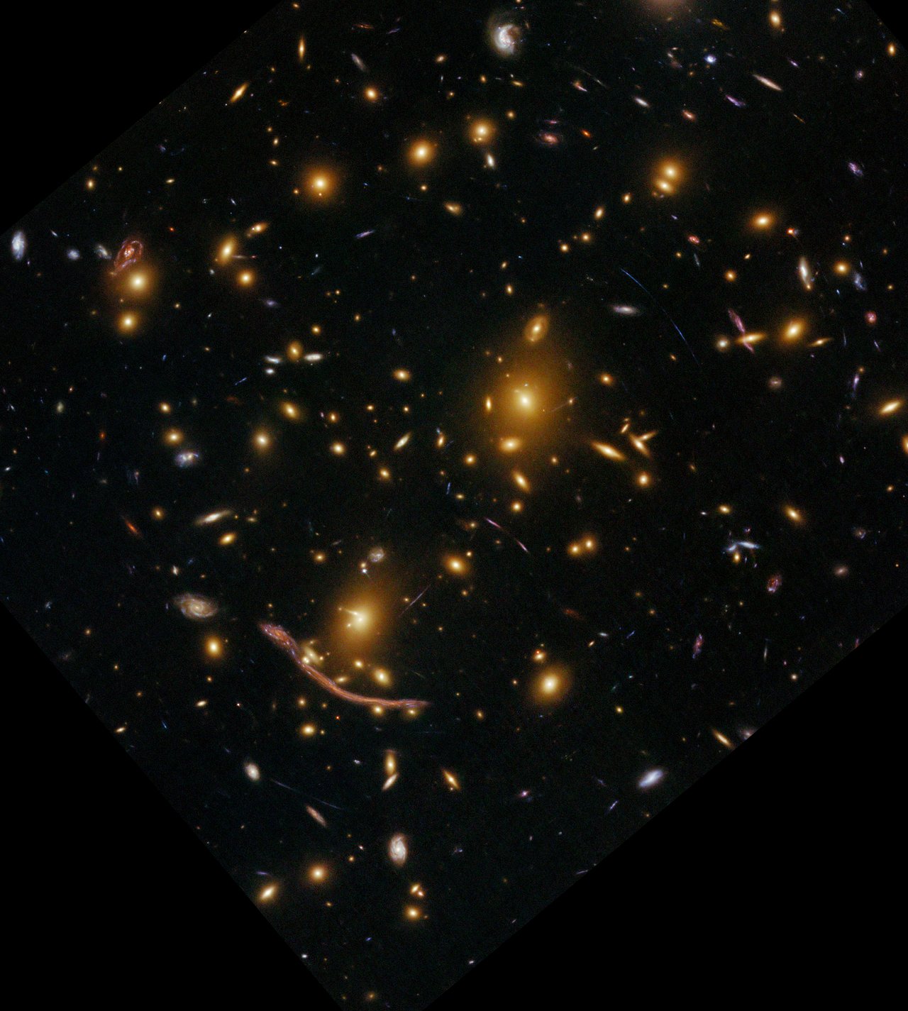 This image of Abell 370 was released in 2009. Compared to the new image, which contains more observation time, less structures are visible and faint objects have disappeared – the new image has increased the depth of the image dramatically, clearly showing the benefit of additional observation time. A direct comparison between both images can be seen here.