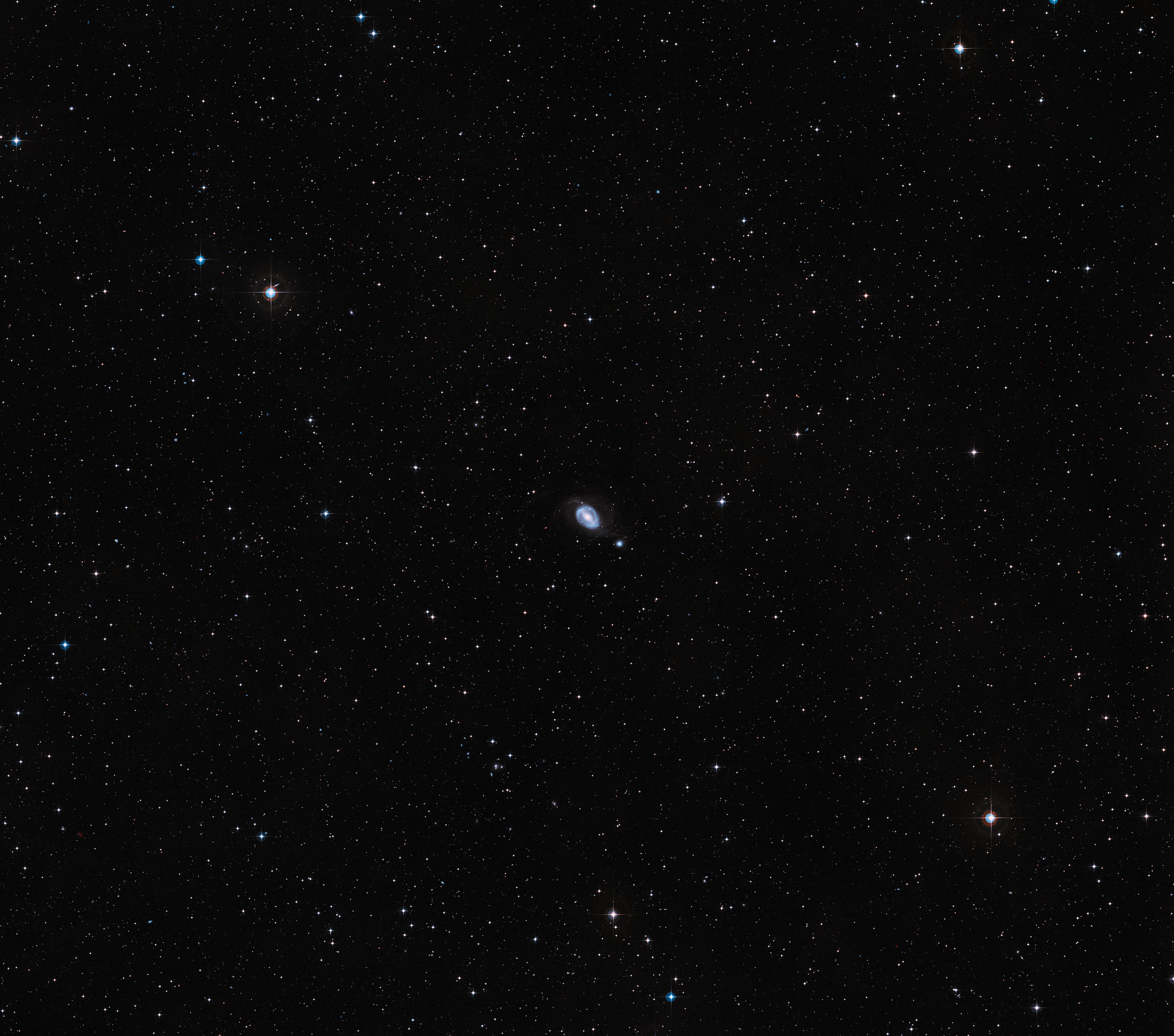 This image shows the sky around the two interacting galaxies NGC 1512 and NGC 1510. NGC 1512 is clearly visible in the very centre of the image.