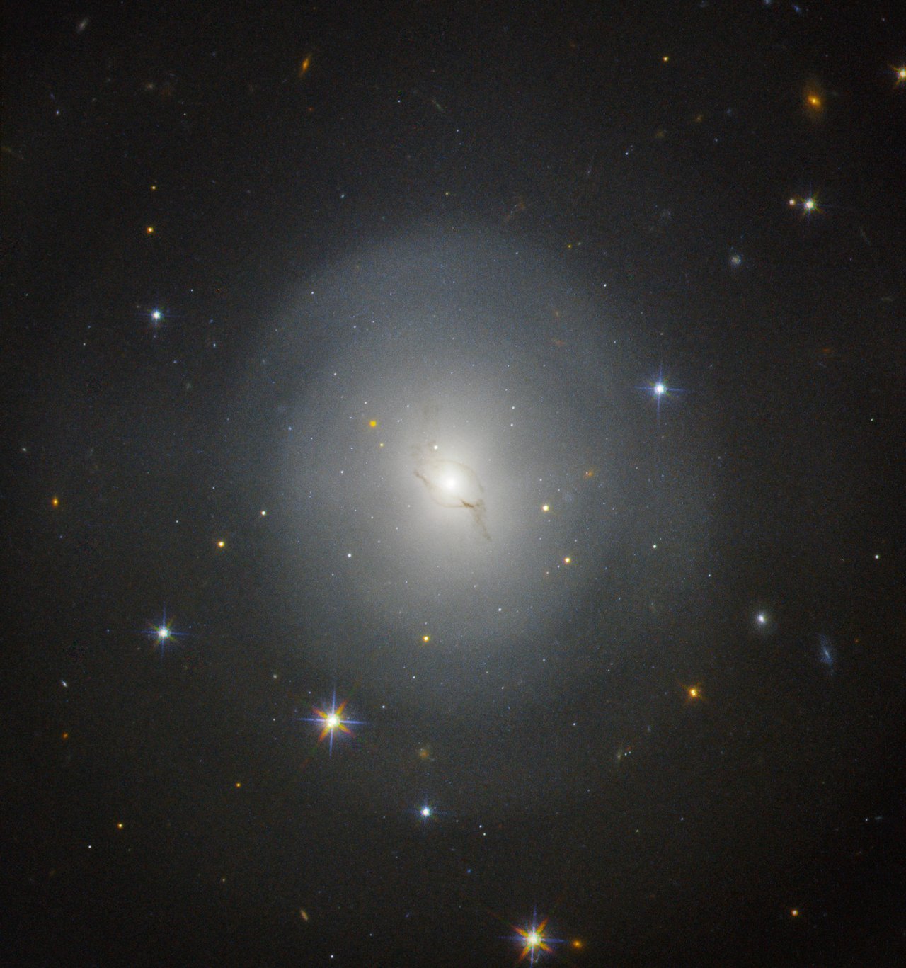 The lenticular galaxy NGC 4993 is located about 130 million light-years from Earth. On 17 August 2017 the Laser Interferometer Gravitational-Wave Observatory (LIGO) and the Virgo Interferometer both detected gravitational waves from the collision of two neutron stars within this galaxy. The event also resulted in a flare of light, called a kilonova, which is visible to the upper left of the galactic centre in this image from the NASA/ESA Hubble Space Telescope.