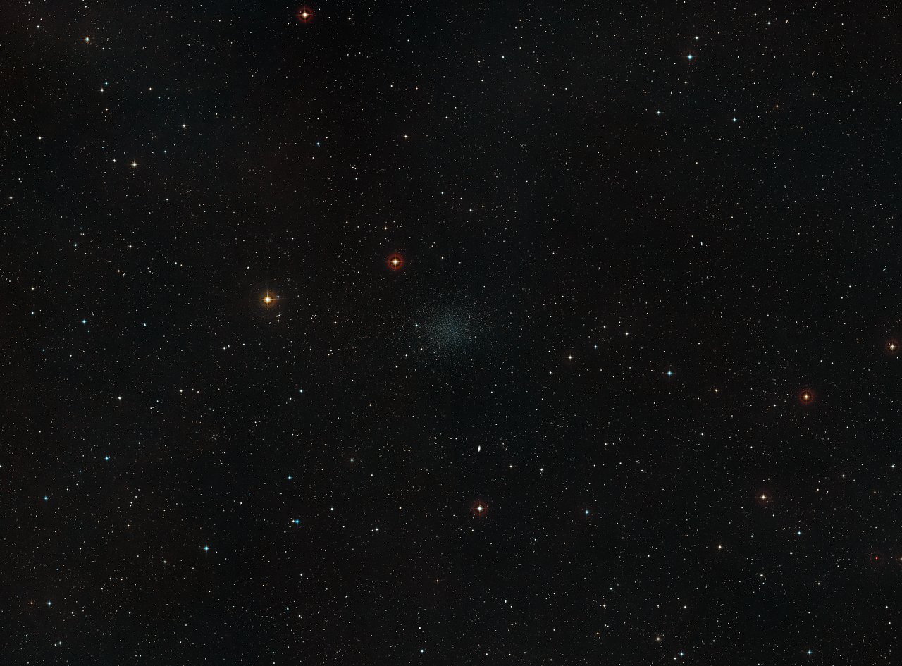 This image of the sky around the Sculptor Dwarf Galaxy was created from images from the Digitized Sky Survey 2. The galaxy appears as a small faint cloud, close to the centre of the image.