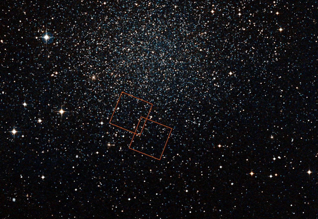 This image shows the Sculptor Dwarf Galaxy as it is seen from the ground with the Digitized Sky Survey 2. The two insets show the two pointings of Hubble that were used in the latest discovery, using data from both the NASA/ESA Hubble Space Telescope and ESA's Gaia satellite.