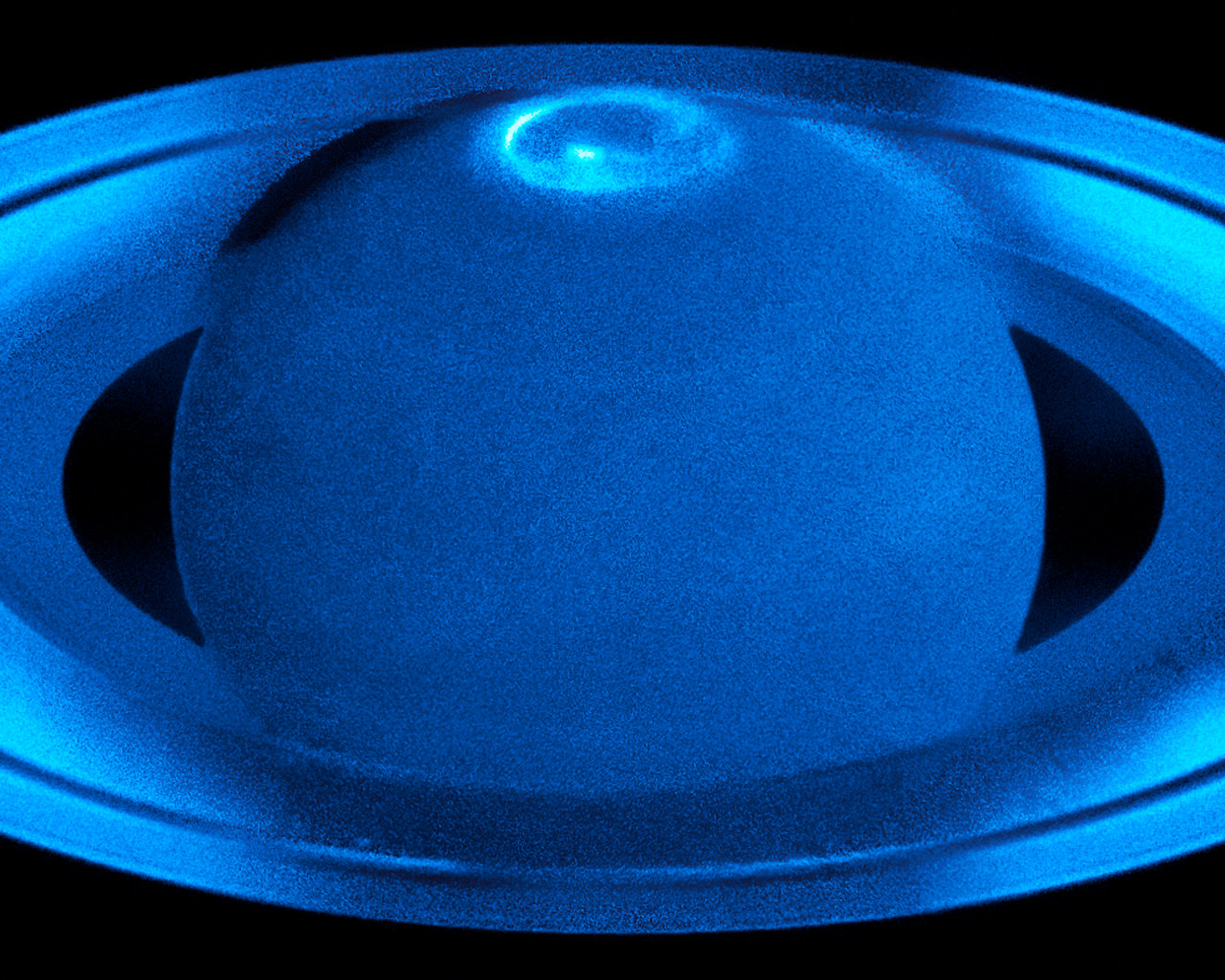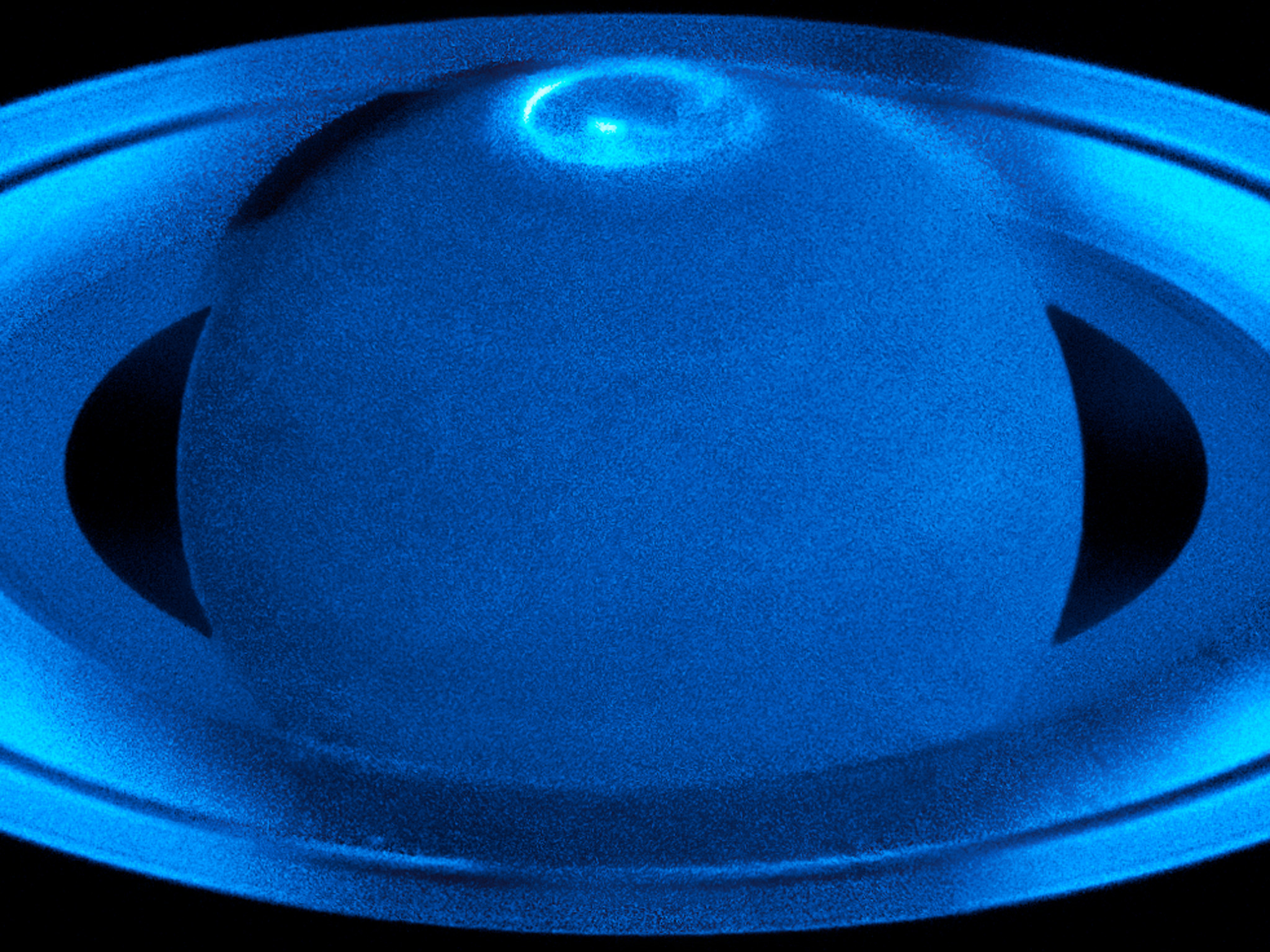 The image, observed with the Space Telescope Imaging Spectrograph in the ultraviolet, shows the auroras surrounding Saturn's north pole region.