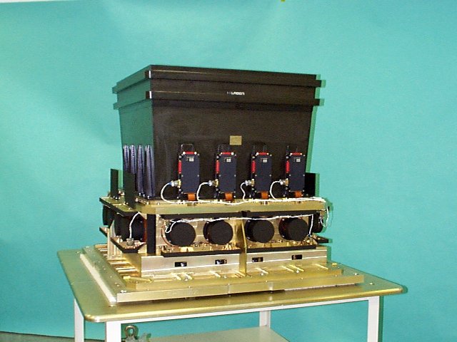 The imager, IBIS (Imager on Board the Integral Satellite) gives sharper images than any previous spaceborne gamma-ray instrument. IBIS can locate sources to within a precision of 30 arcseconds, which is the equivalent of measuring the position of individual people in a crowd situated at a distance of 1.3 kilometres. The instrument works in the energy range 15 keV to 10 MeV. It consists of a detector and a coded mask made of tungsten that is placed 3.2 metres above it. The detector (seen in this image) uses two layers of sensitive picture elements (pixels) located one on top of the other. The top layer is made of 16 384 cadmium-telluride (Cd-Te) pixels and detects the low-energy gamma rays. The second layer consists of 4096 caesium-iodide (Csl) pixels, and captures the high-energy gamma rays. Comparing the results from the two layers allows the paths of the gamma rays to be tracked in 3D. The principal investigating institutions for IBIS are IAS Roma, Italy, CEA Saclay, France and TESRE Bologna, Italy.